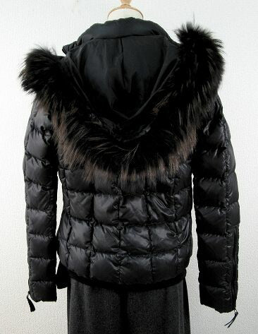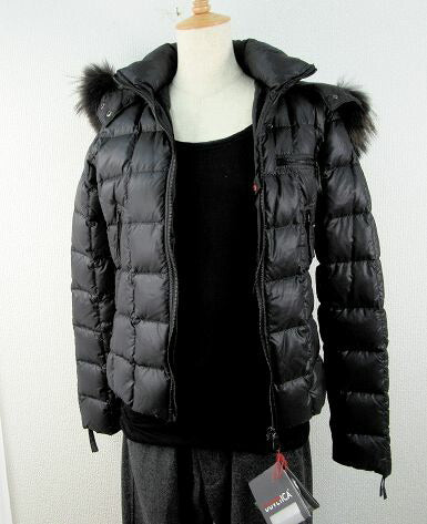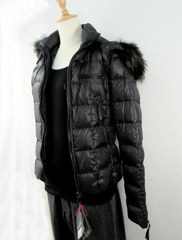 【】 DUVETICA/デュベティカ フード付 レディース ダウンジャケット 【中古】 40 Мサイズ 9号 ファー 黒 ブラック