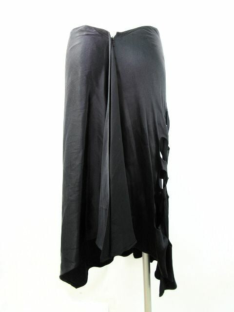 GUCCI/グッチ シルク100%カットスカート Mサイズ 中古 レディース ブラック 黒 デザイン おすすめ 花 フラワー