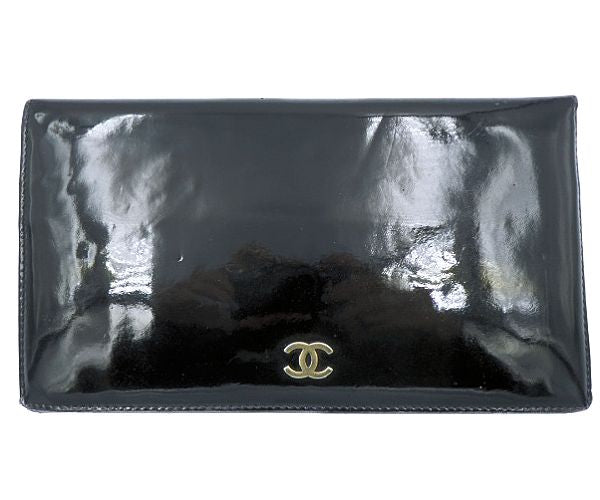 CHANEL シャネル ココマーク エナメル 二つ折り長財布 中古 6246178 ブラック 黒 ブランド CCマーク レディース ウォレット