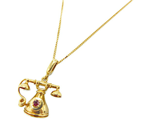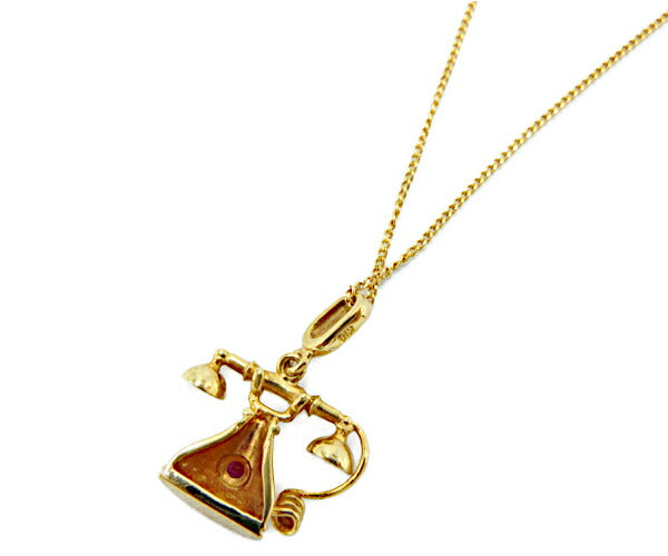 K18 レッドストーン アンティーク テレフォン デザイン ネックレス 中古 アクセサリー ゴールド 18金 レディース クラシカル ジュエリー