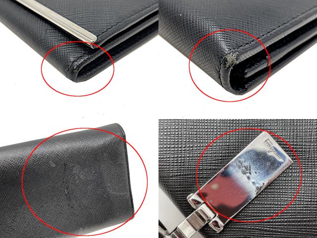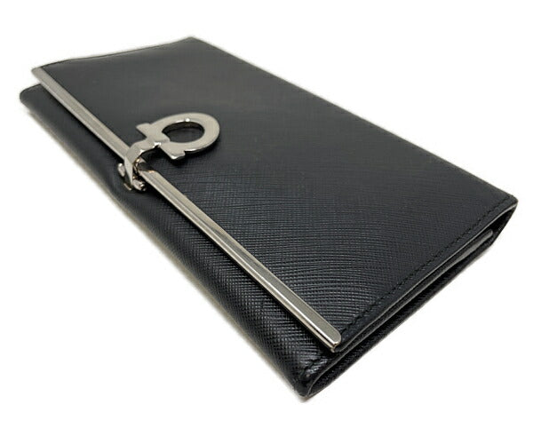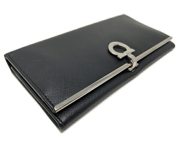 Salvatore Ferragamo サルヴァトーレフェラガモ ガンチーニ 二つ折り長財布 中古 ブラック 黒 ウォレット ブランド レザー レディース
