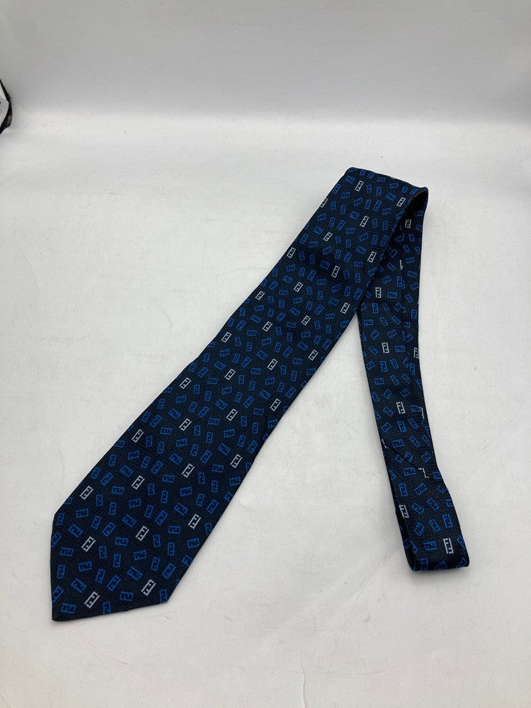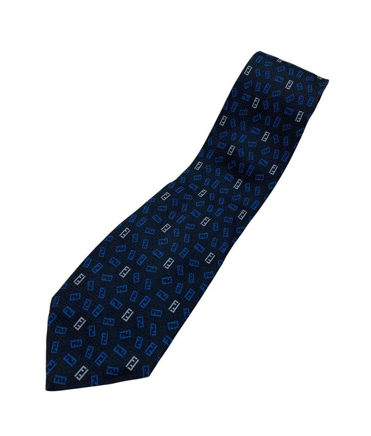 FENDI フェンディ ズッカ柄 ネクタイ シルク100% ダークネイビー 中古 D4