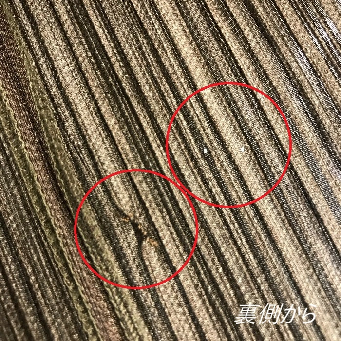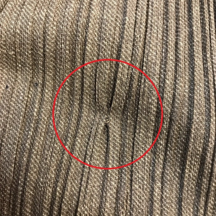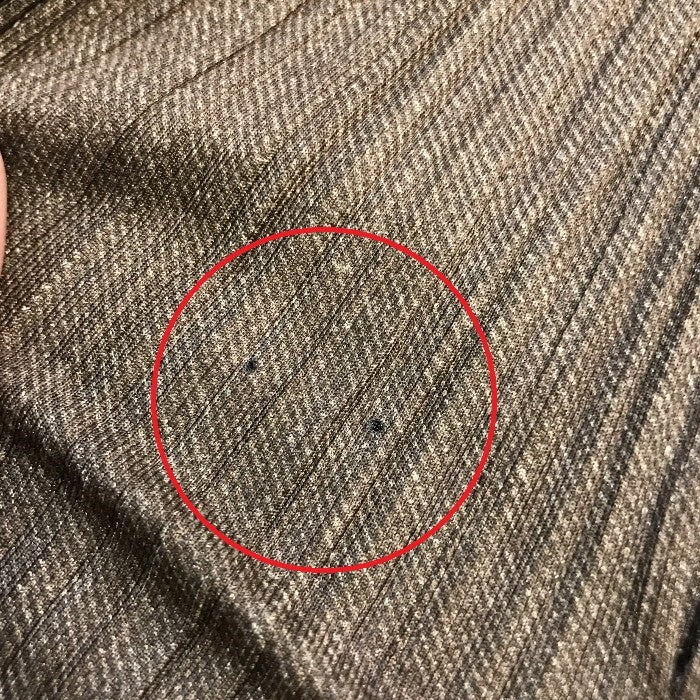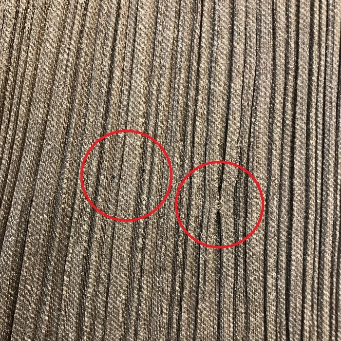 | 状態 | 難あり:前中央にピンで開いたような穴が2か所、その横に補修あとあり。全体的な使用感は少ない状態です。 | |