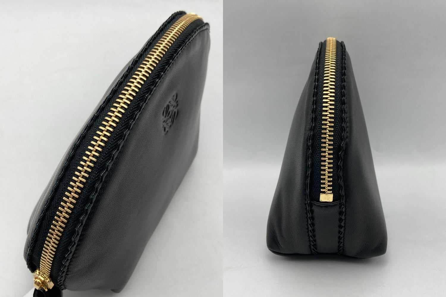 LOEWE ロエベ ナッパレザー 化粧ポーチ/コスメポーチ アナグラム ブラック 中古 D4