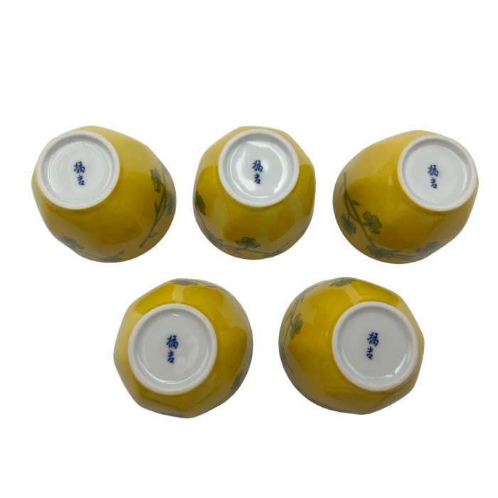 たち吉 黄地草文 急須 湯呑 5客セット 橘吉 和食器 お茶 かわいい 中古 W4