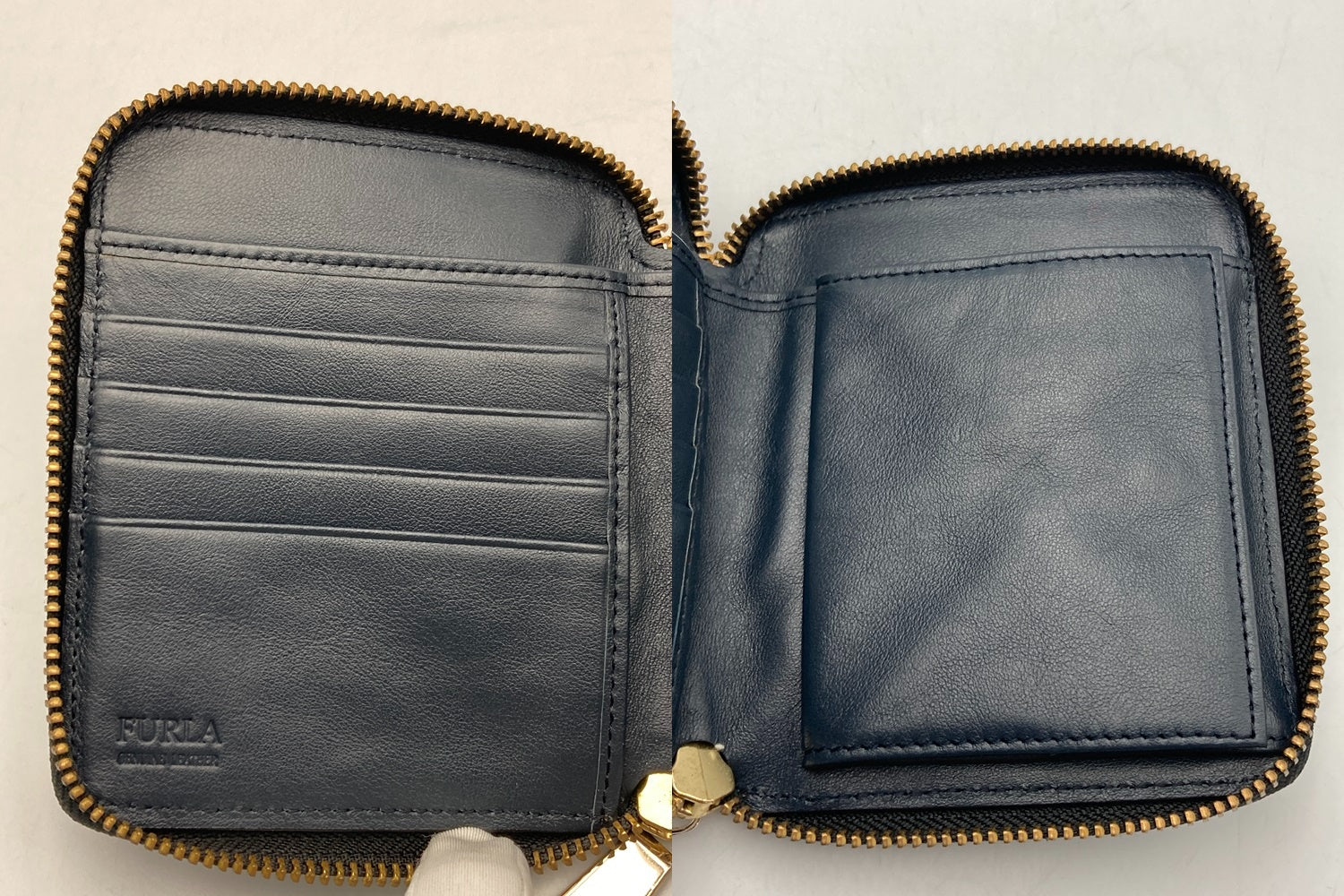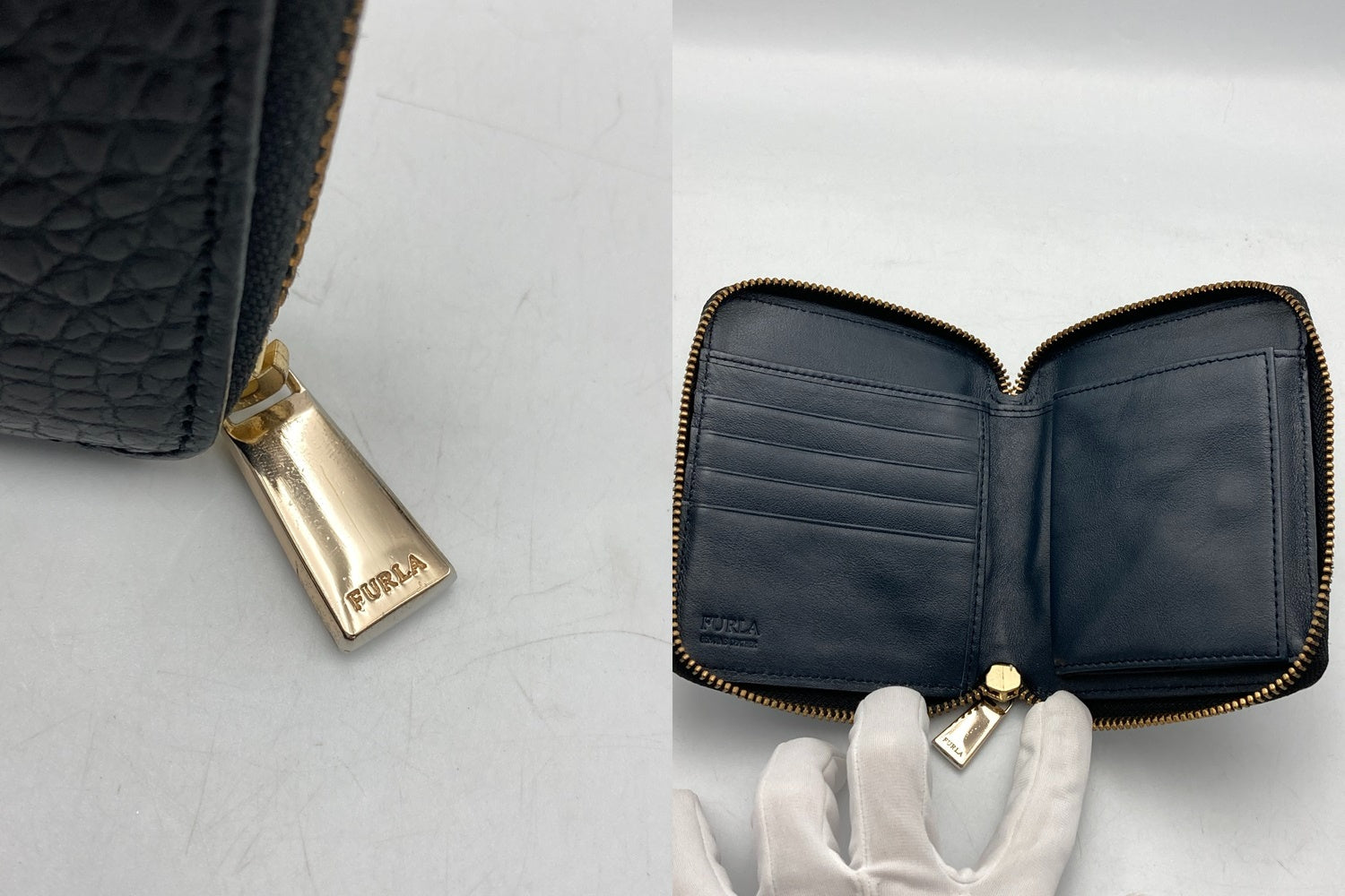 FURLA フルラ 型押しクロコ ラウンドファスナー コンパクト財布 中古 D4