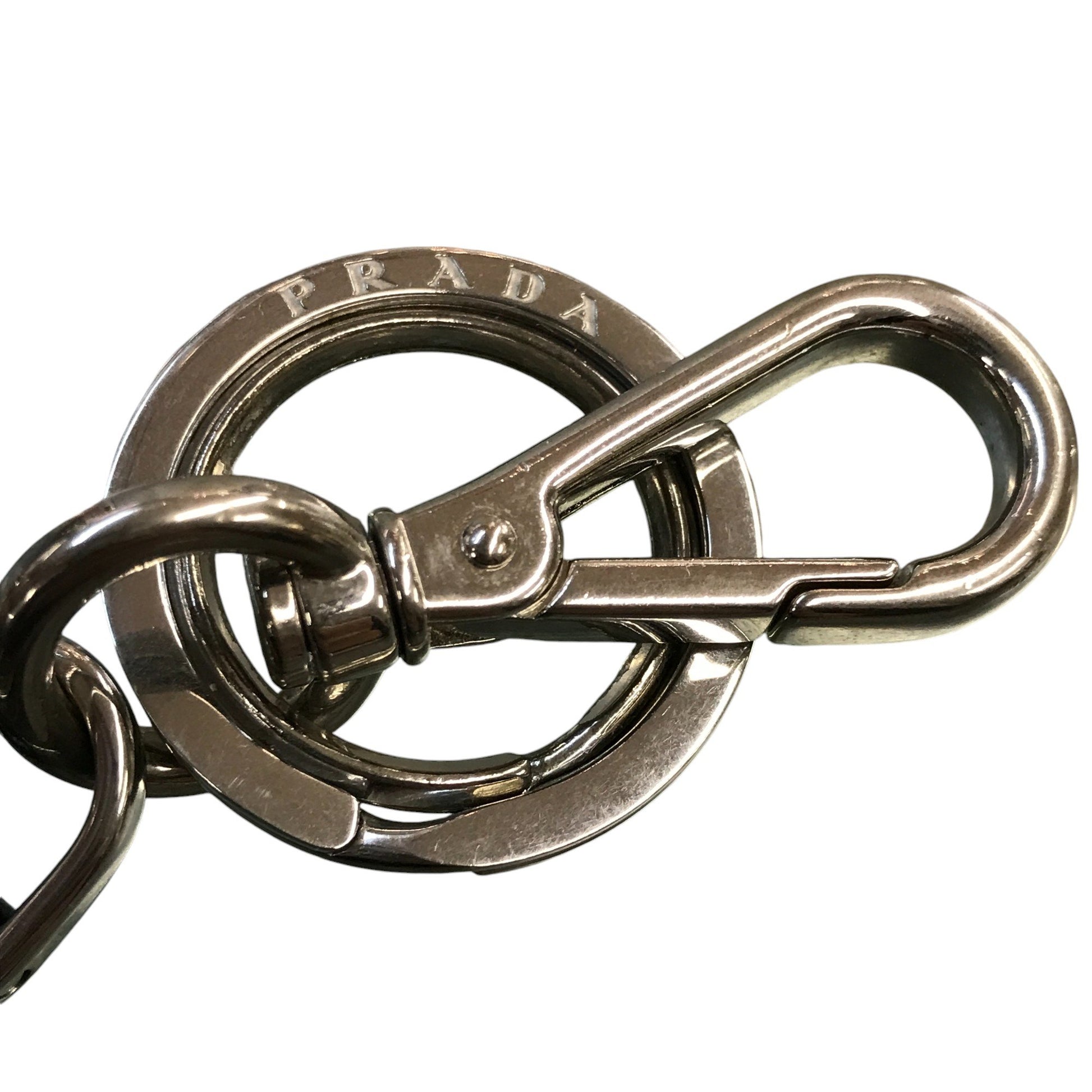 PRADA プラダ キーホルダー レザープレート キーリング チャーム 車 シルバー/ブラック 中古 T1