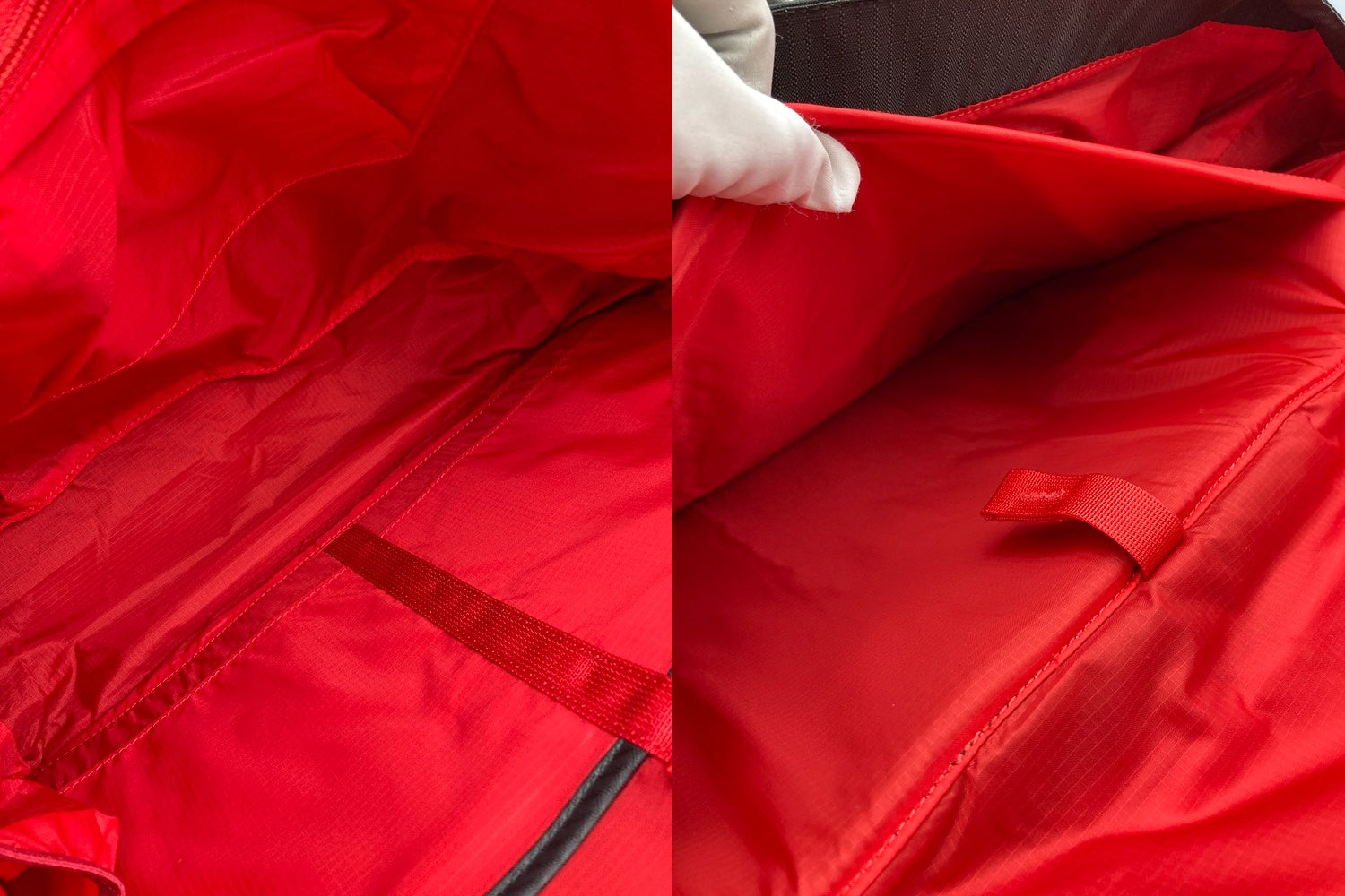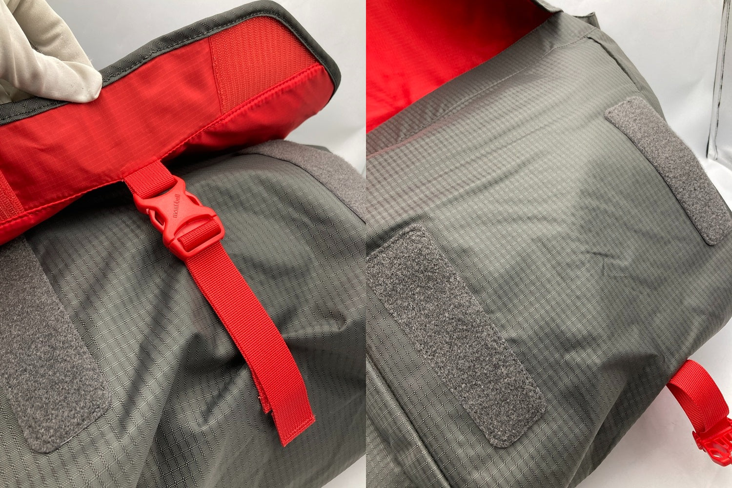 | 素材 | 本体:330デニール・ナイロンダブルリップストップ[ウレタン・コーティング]、内側:70デニール・ナイロン・リップストップ[ウレタン・コーティング] | |