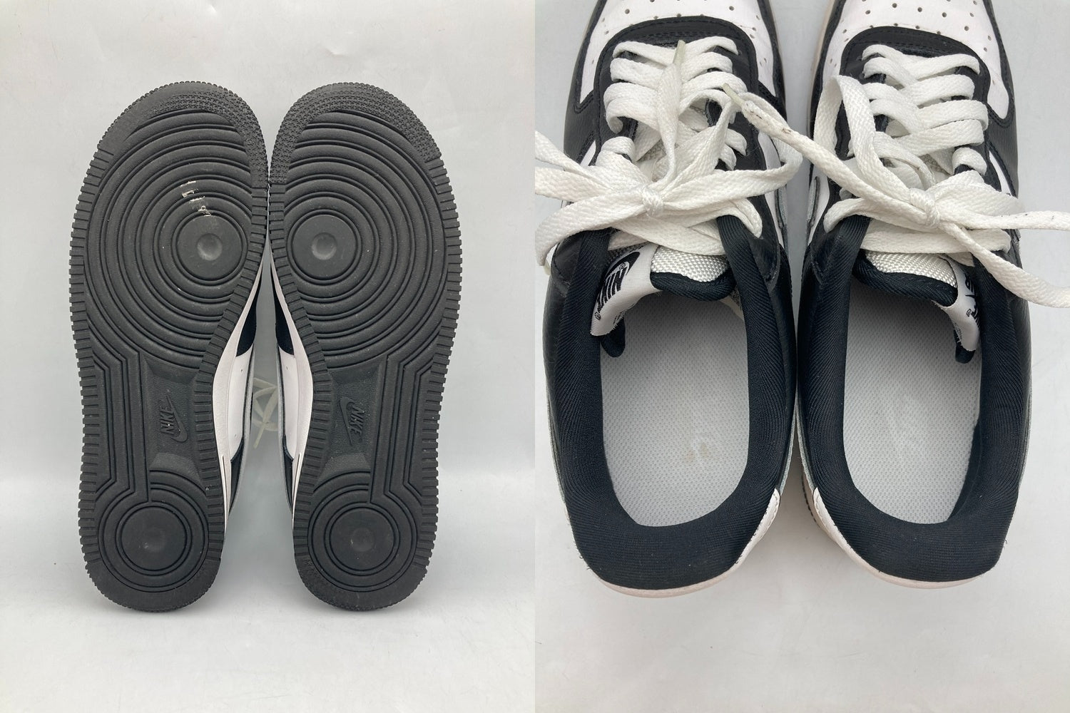 やや汚れや履きジワ、アウトソールの黄ばみがございます。 中敷きが純正のものではございません。 シューレースに付属しているAF1のプレートが欠品しております。 箱はございません。 |