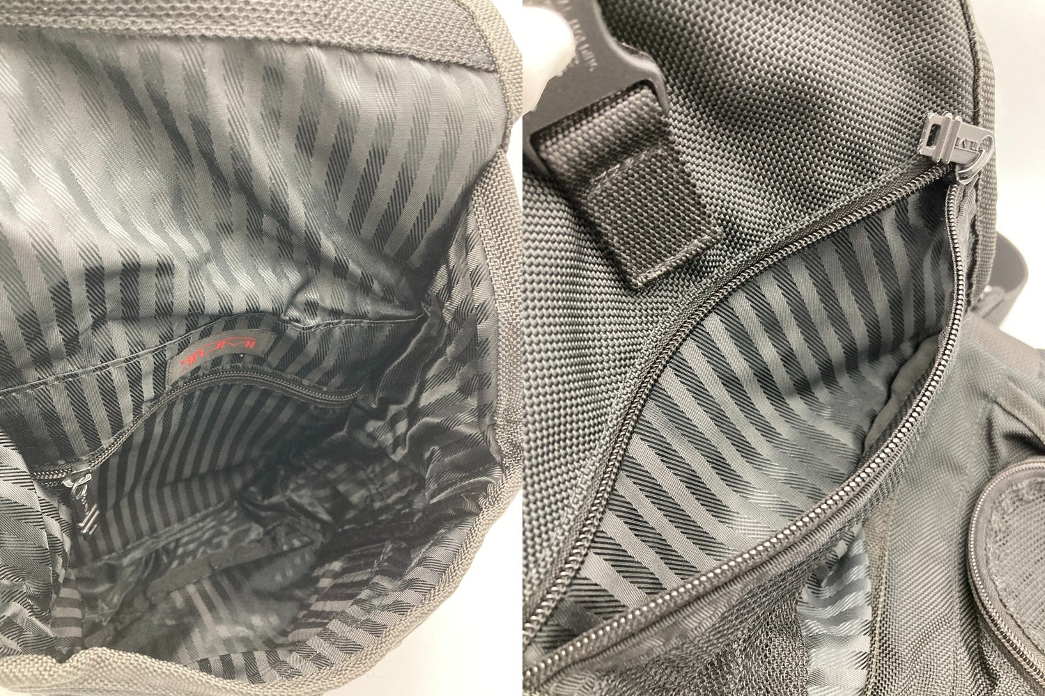 サイドや後ろ面に白い汚れや擦れ跡がございます。 ファスナープルやショルダー調整金具にキズや色ハゲがございます。 型崩れがございます。 |