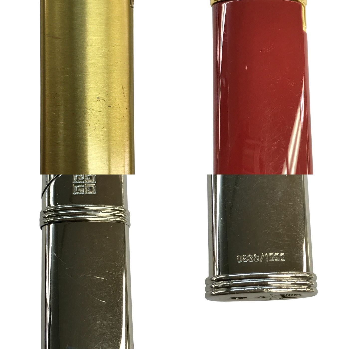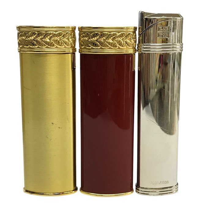 SONIA RYKIEL / GIVENCHY ガスライター 3点セット スリム 着火未確認 ジャンク品 ゴールド/レッド/シルバー 中古 T1