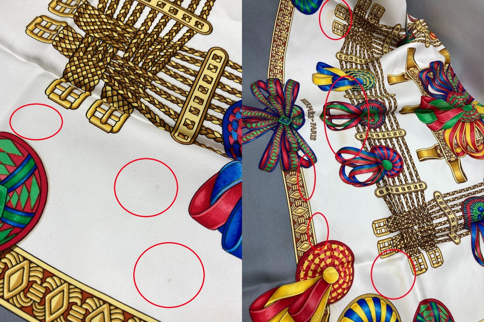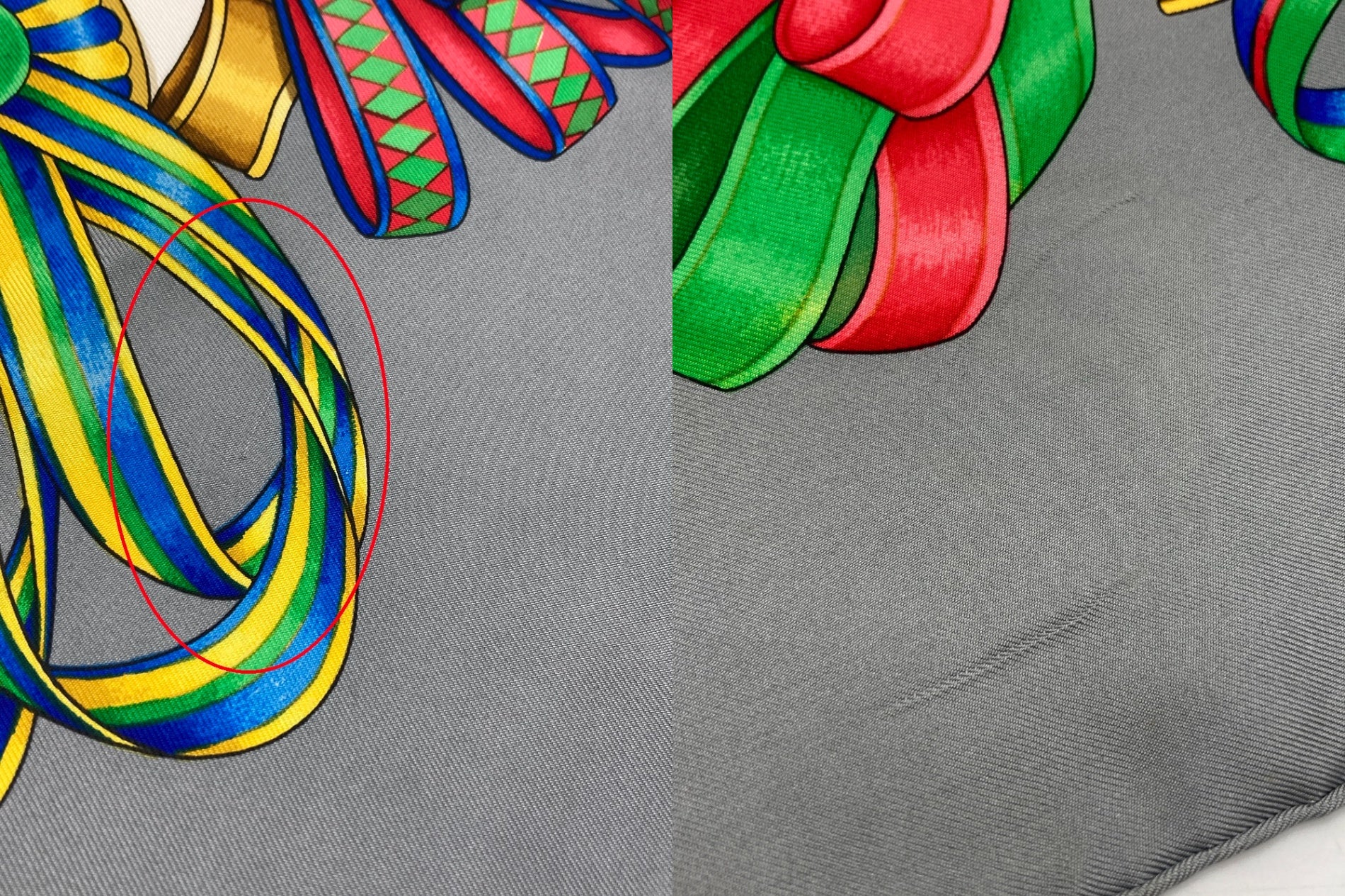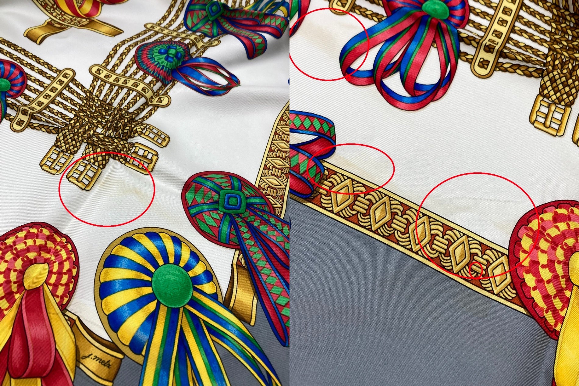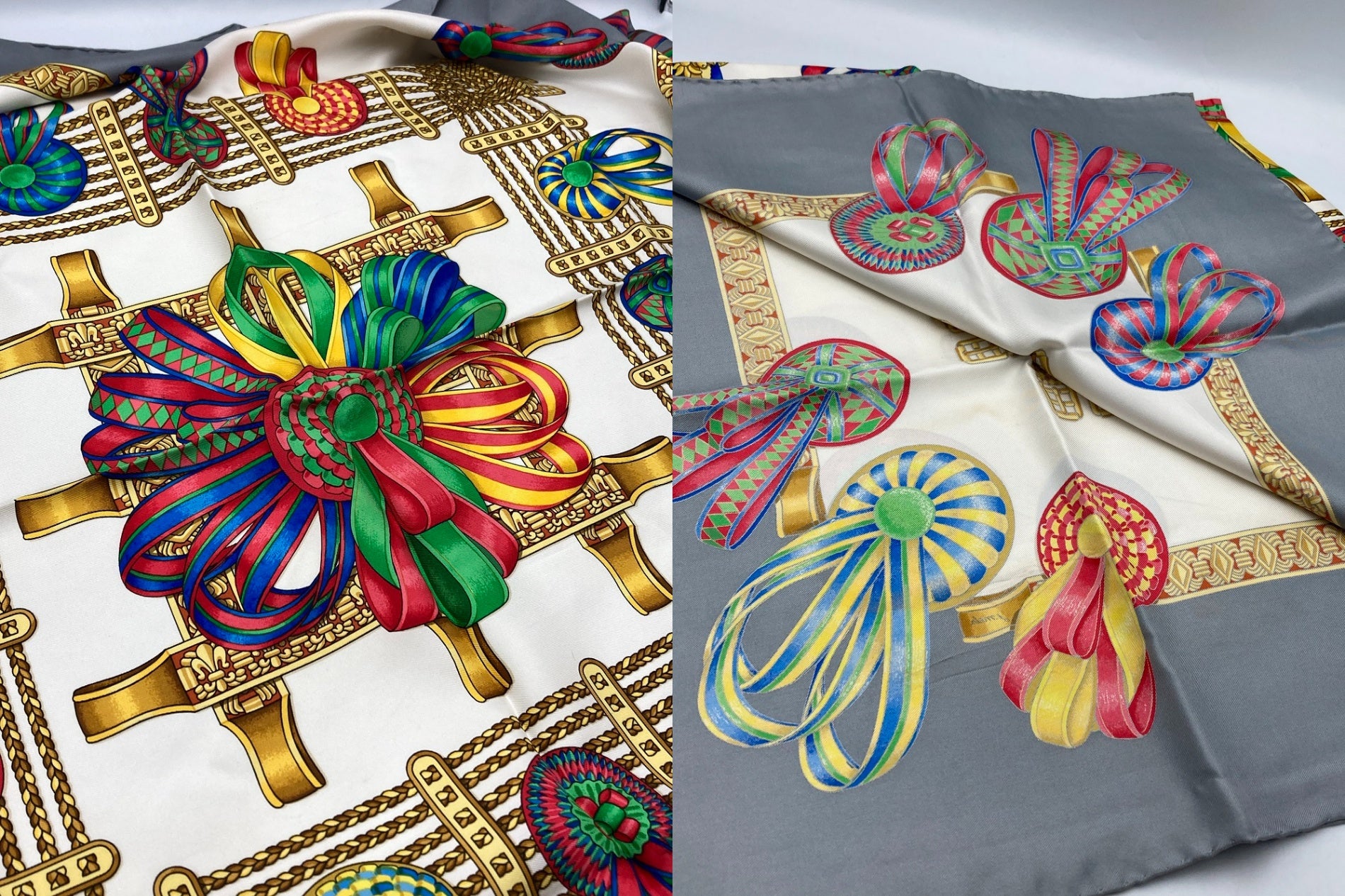 HERMES エルメス カレ90 LES RUBANS DU CHEVAL 馬のリボン スカーフ グレー 中古 D4