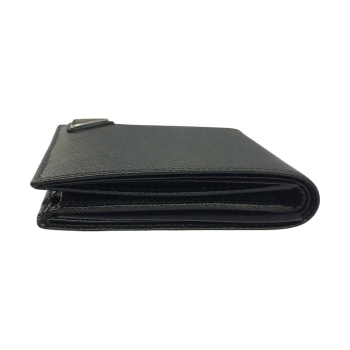 PRADA プラダ 財布 メンズ 二つ折り サフィアーノレザー SAFFIANO TRIANG 三角プレート 小銭入れあり ブラック 2MO738 中古 T1