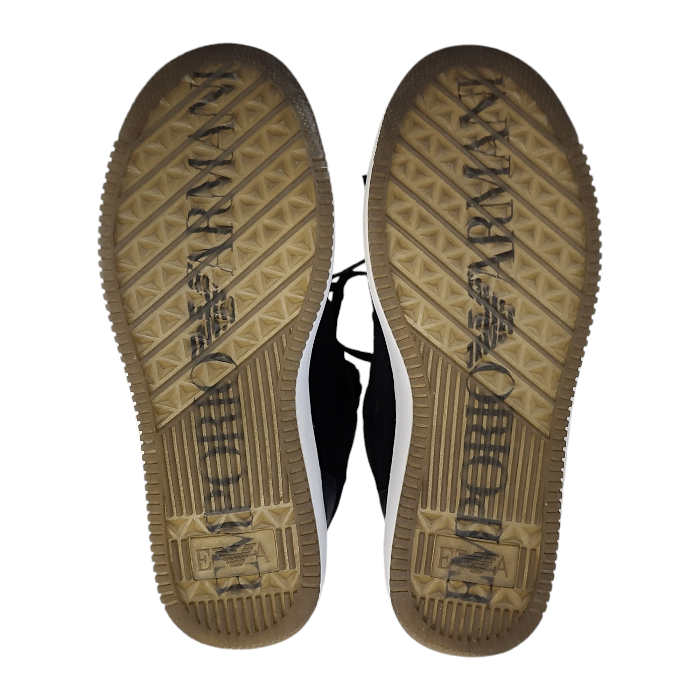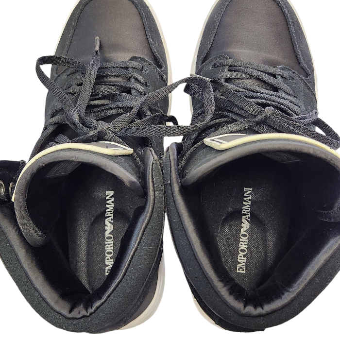 EMPORIO ARMANI スニーカー レディース ハイカット ロゴ スウェード レザー サテン ブラック 約22.5cm X3Z033 XM080 中古 T1