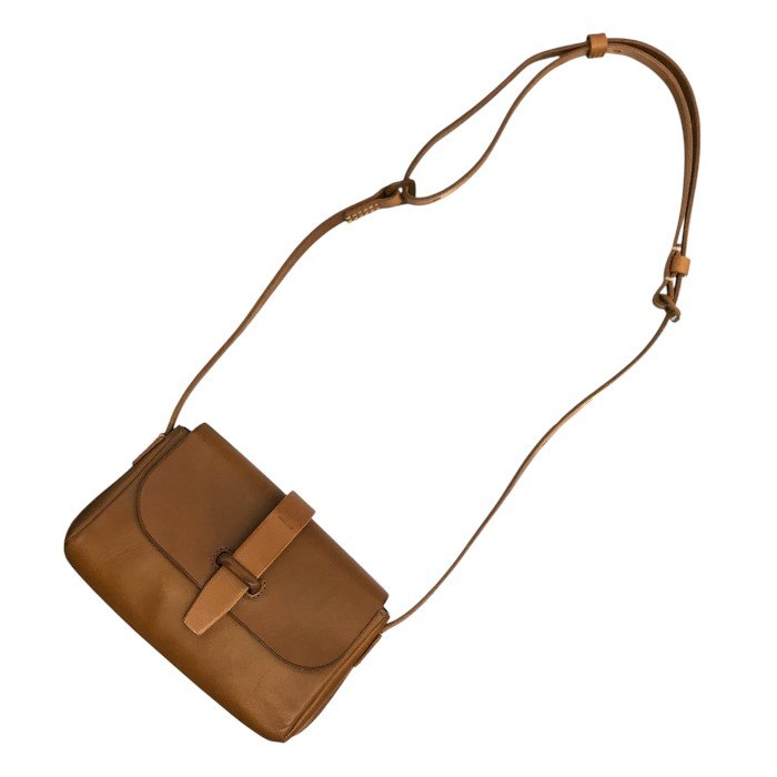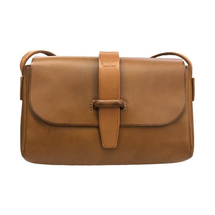 genten ゲンテン ヌオーバ ショルダーバッグ ユニセックス レザー サドルベルト コンパクト 横型 斜め掛け ブラウン 中古 T1