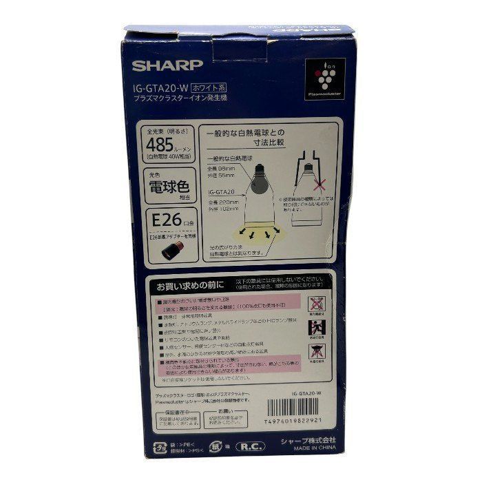 シャープ イオン発生機 高濃度プラズマクラスター25000搭載 トイレ用天井設置型 ホワイト系 IG-GTA20-W SHARP 家電 E26 電球色相当 中古 W4