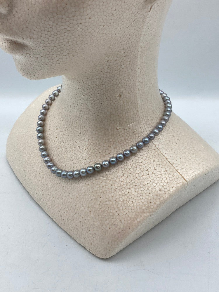 シルバー 4.5ー7.0mm グレーパール ネックレス 中古 D4