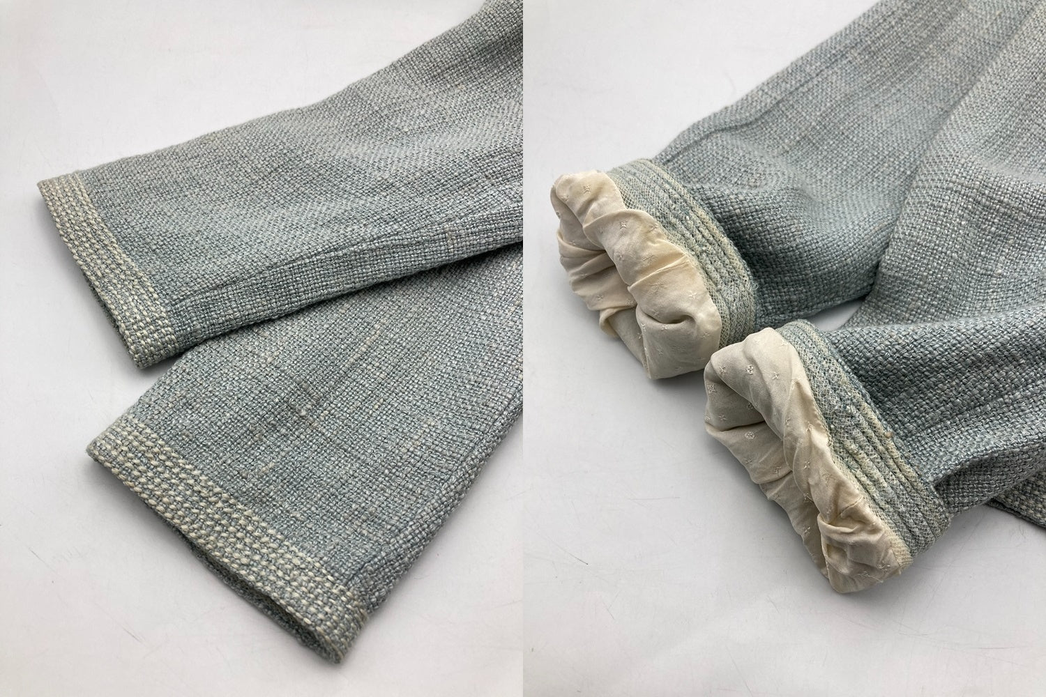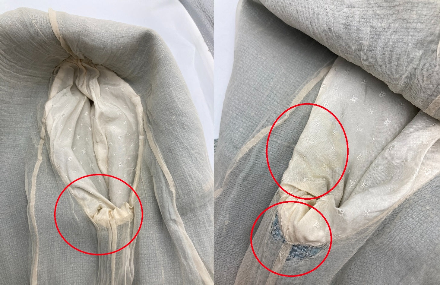 毛羽立ちやひっかきキズ、やや汚れがございます。 裏地の破れや袖口の汚れ、脇汗シミがございます。 |