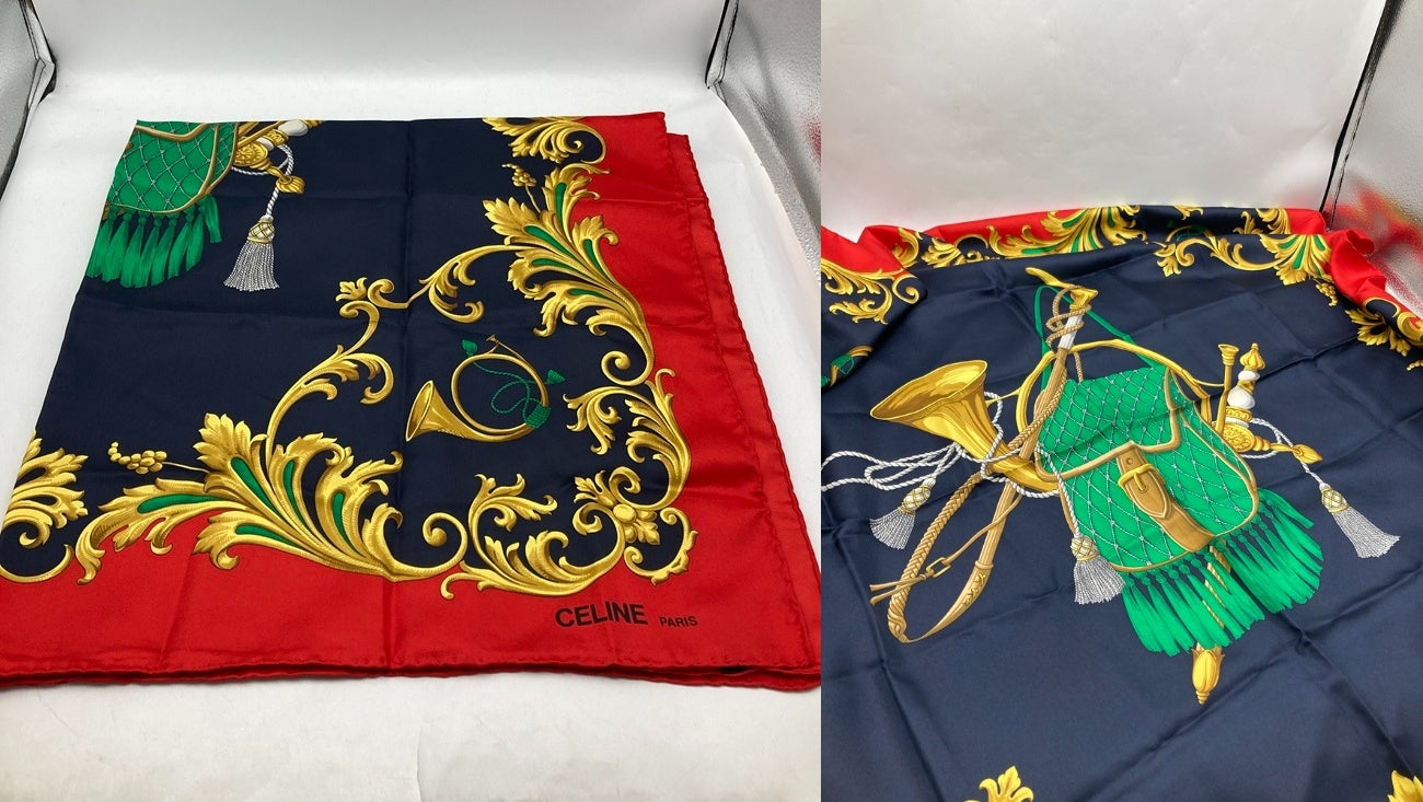 CELINE セリーヌ バッグ柄 スカーフ シルク100% 中古 D4