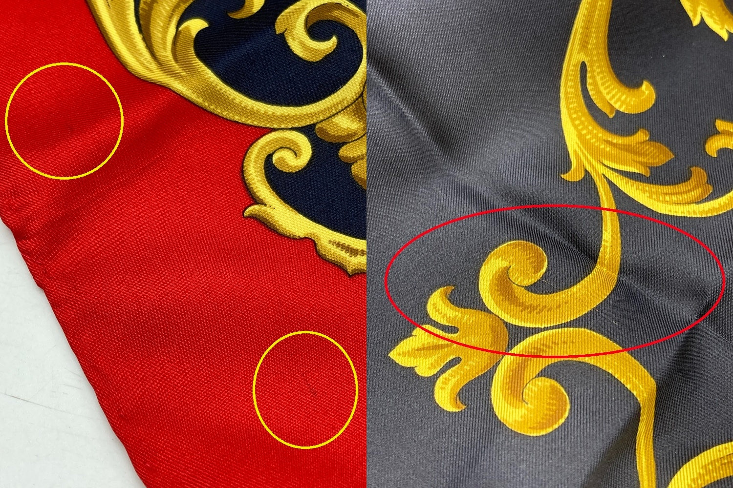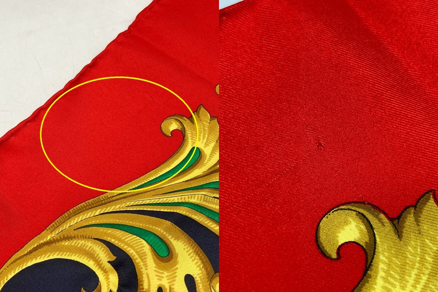 やや糸引きがございます。 細かな汚れや小穴が一ヶ所ございます。 畳みジワ、折り跡がございます。 |