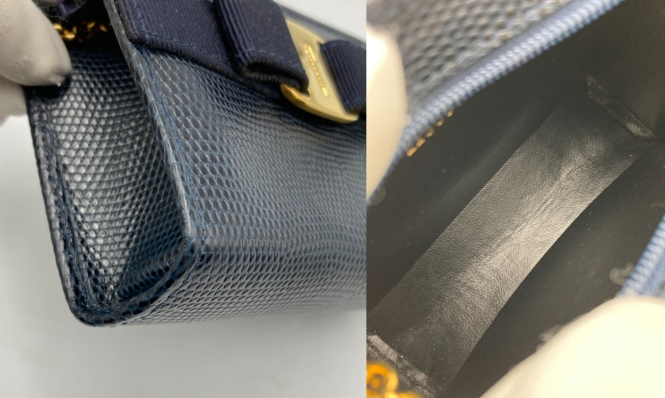 Salvatore Ferragamo フェラガモ ヴァラリボン リザード調 型押しレザー ポーチ 223057 中古 D4