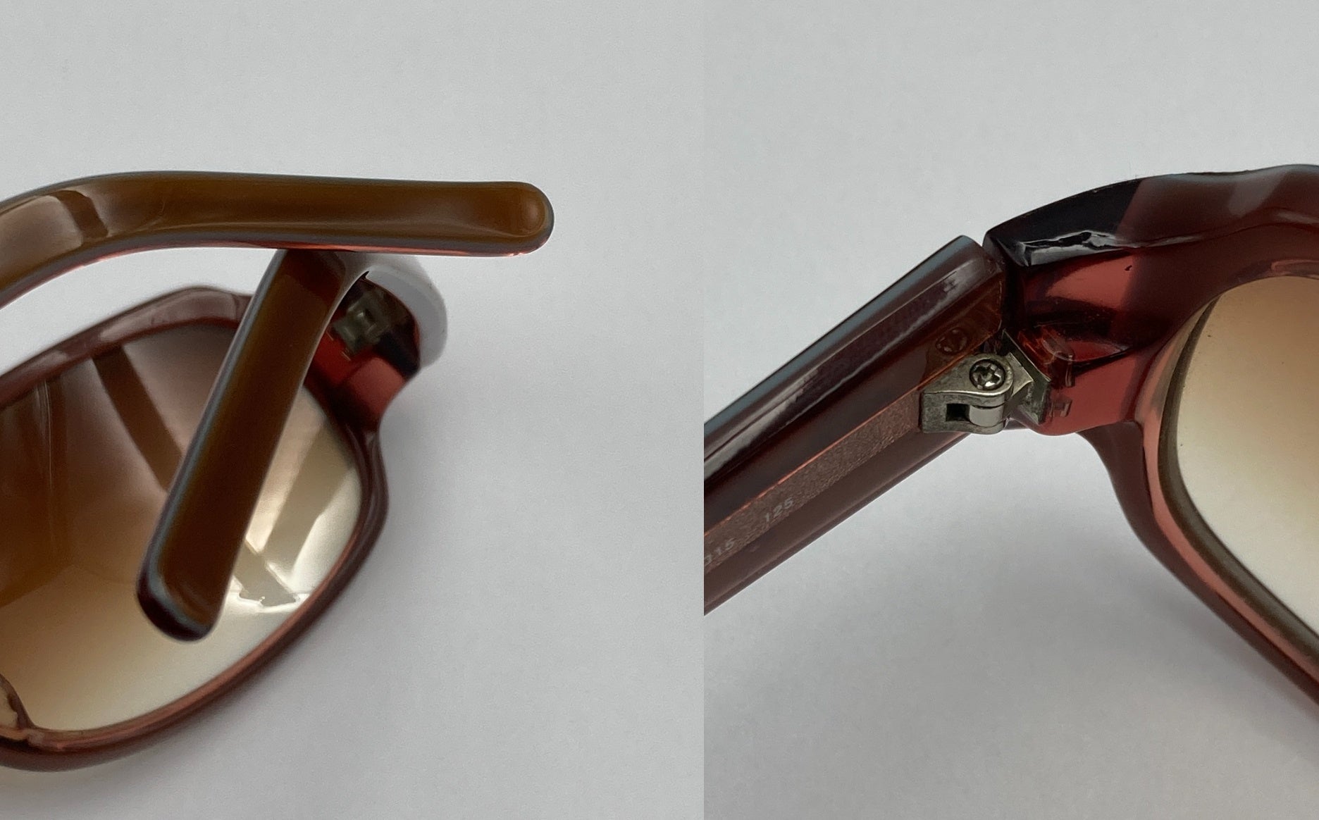 レンズに若干のコキズや、テンプルとフレームにややキズやスレがございます。 歪みやテンプルの先が内側に入っており、お使いいただくには調整が必要です。 箱やケースはございません。 |