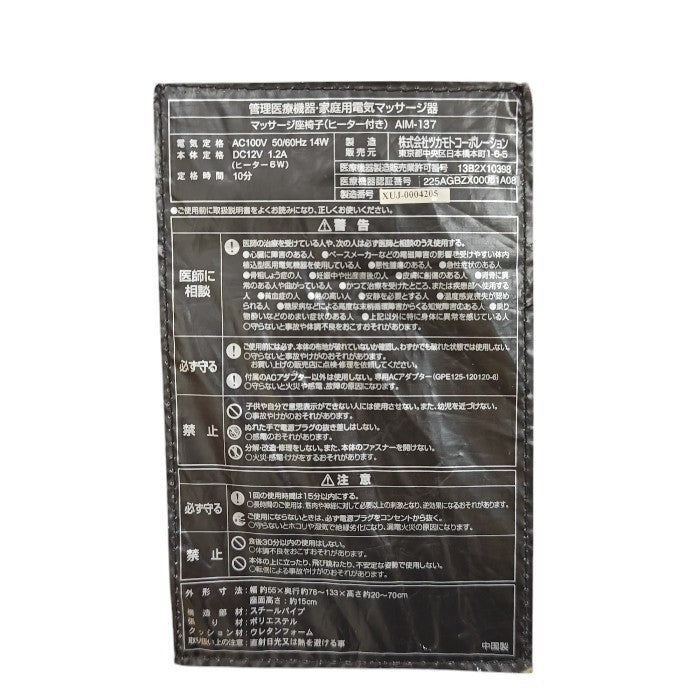 | 機能 | ●5箇所の振動マッサージ 身体を温めるぽかぽかヒーター搭載 ●お好みの姿勢でリラックス 背部に42段階、頭部・脚部に14段階の多彩なリクライニング機能を搭載 | |