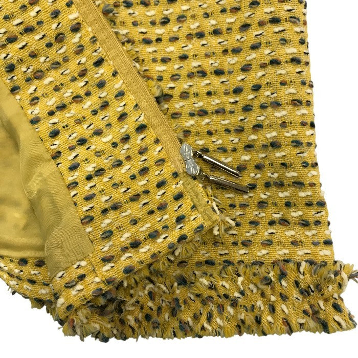 Rene ルネ TISSUE ロングコート レディース 冬 ツイード ノーカラー ダブルジッパー イエロー系 34サイズ 6943240 中古 T1