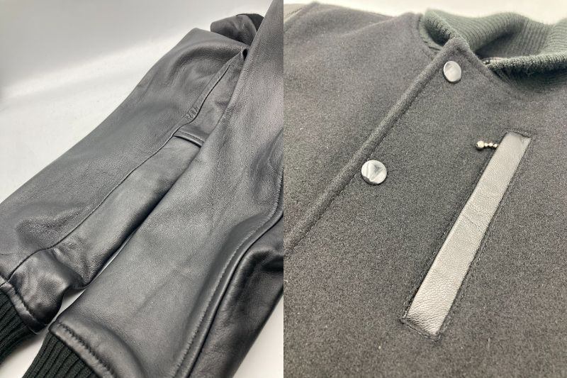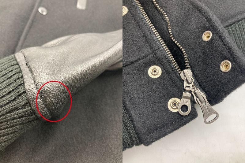 | 素材 | 表地:毛90%、ナイロン10%、裏地:ポリエステル100%、リブ:アクリル87%、ポリエステル12%、ポリウレタン1%、皮革部分:羊革 | |