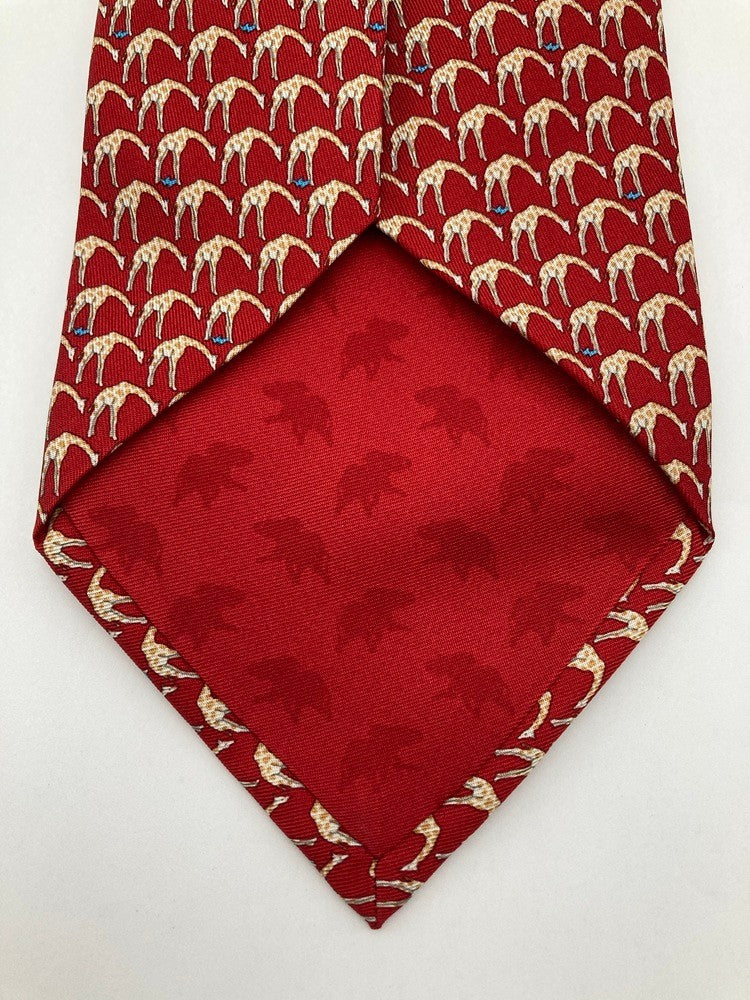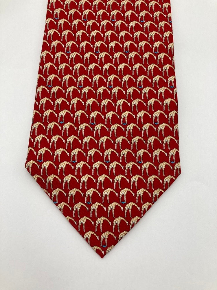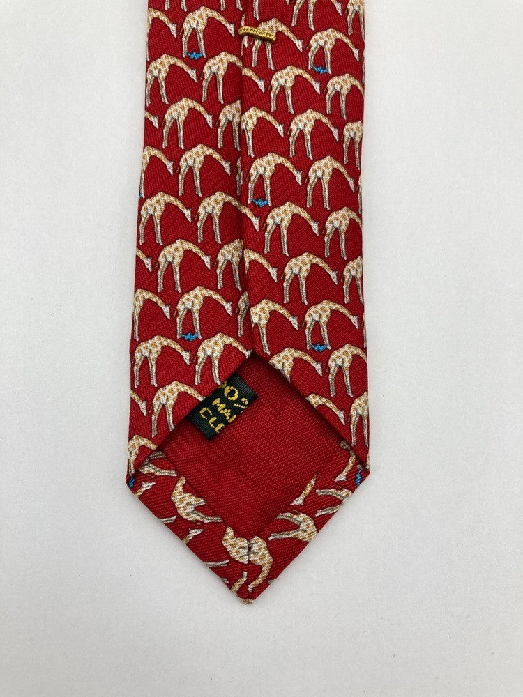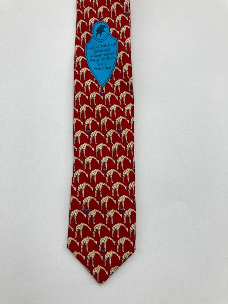 HUNTING WORLD ハンティングワールド キリン柄 ネクタイ シルク100% 中古 D4