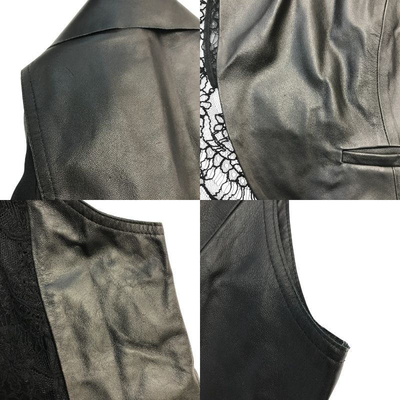 NERO センソユニコ ベスト レディース 羊革 ジレ レース シフォン ブラック 01146002 中古 T1