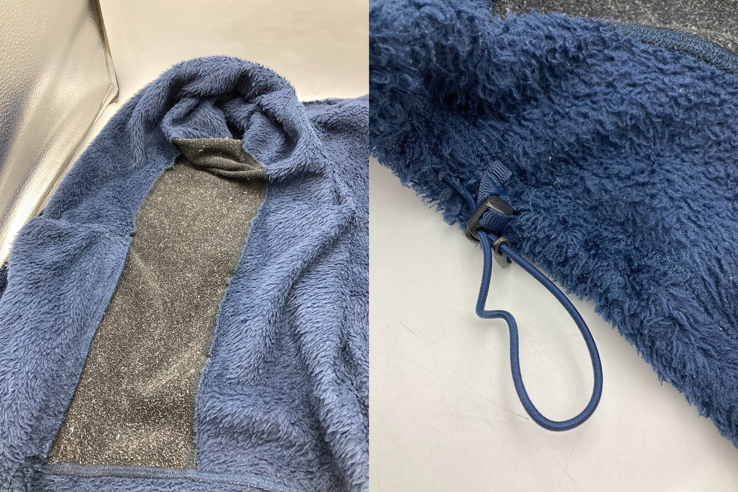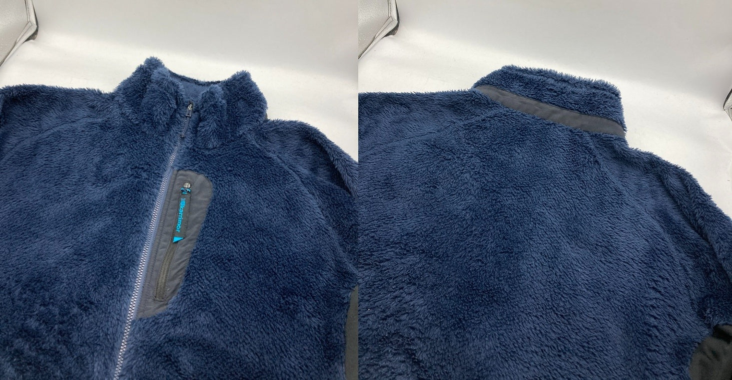着用感がございます。 目立つような汚れはございませんが、毛羽立ちや毛玉、繊維の付着等がございます。 |