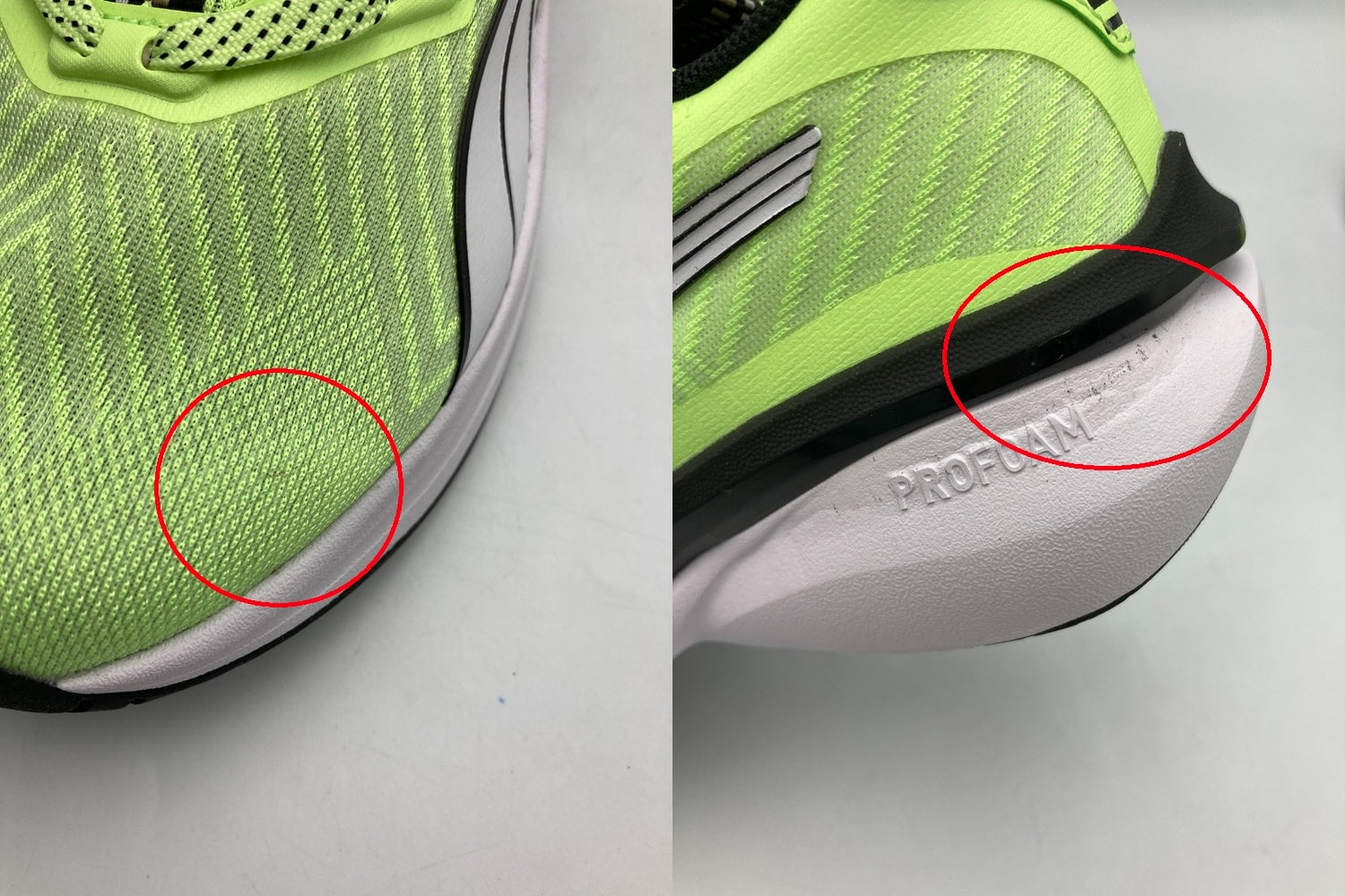 | 素材 | アッパー:合成繊維+合成樹脂(ポリウレタン)+人工皮革,合成樹脂(EVA樹脂, ポリウレタン)、ソール:ゴム底 | |