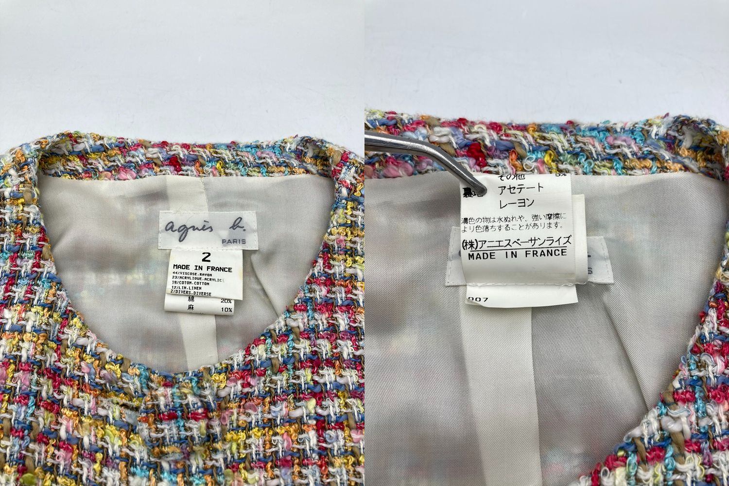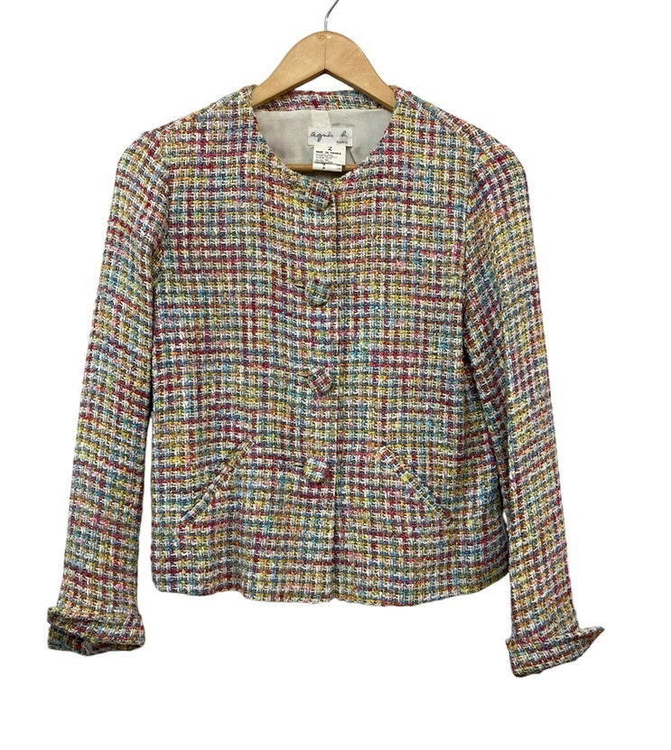 agnes b アニエスべー ノーカラー ツイードジャケット サイズ2 フランス製 中古 D4