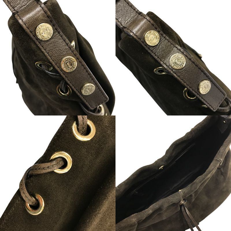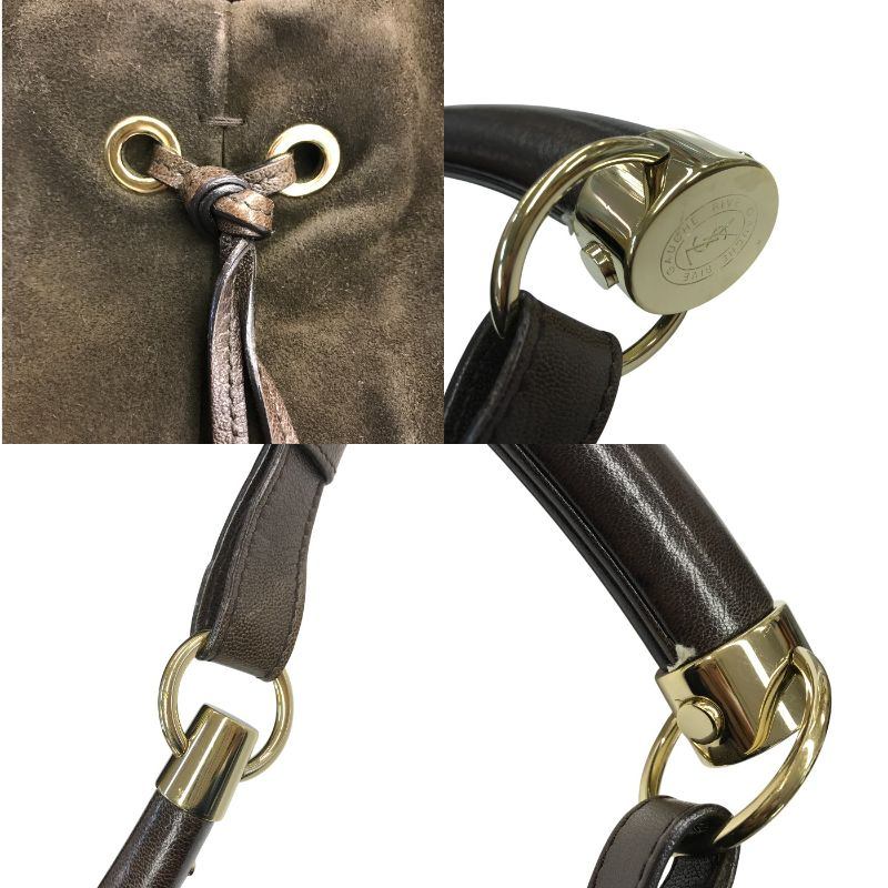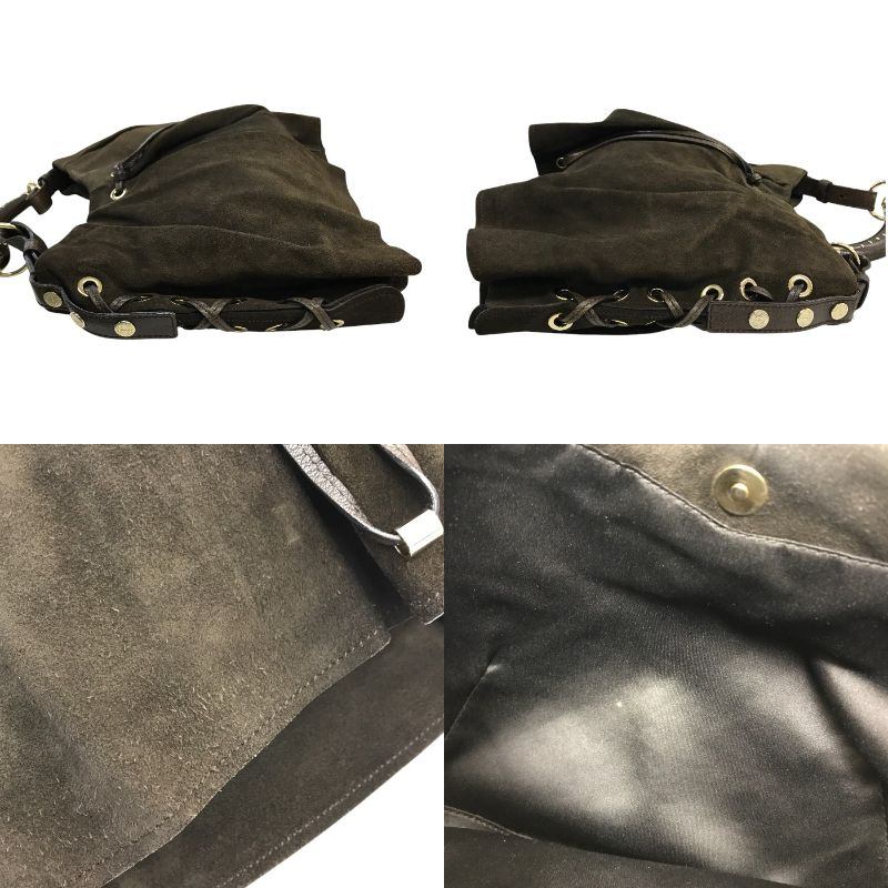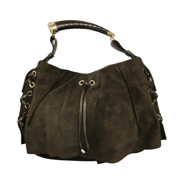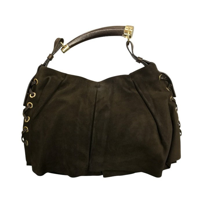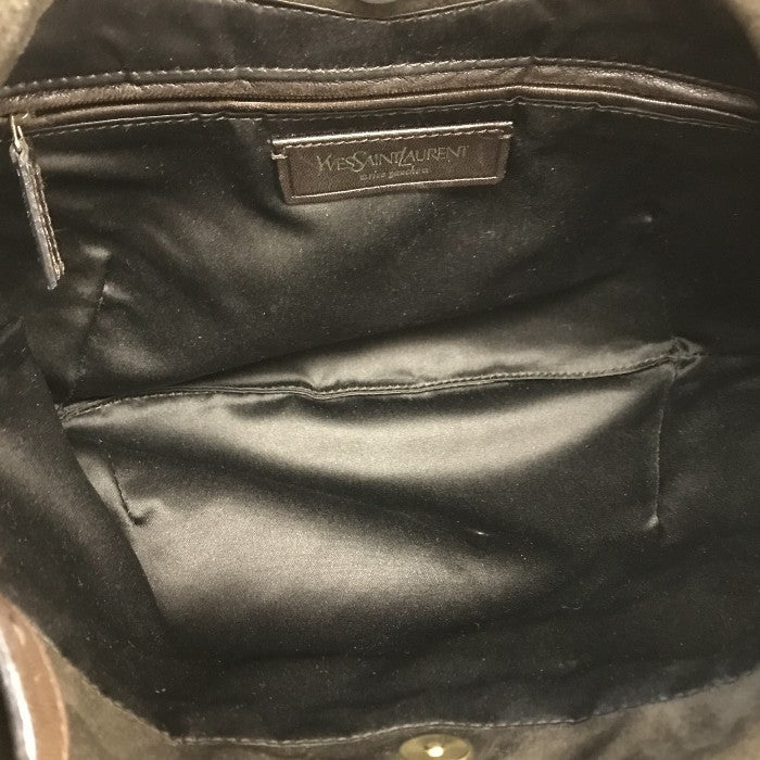YVES SAINT LAURENT イブサンローラン リヴゴーシュ モンバサ ワンショルダー レディース スウェード プリーツ 角型ハンドル 半月 ブラウン 中古 T1