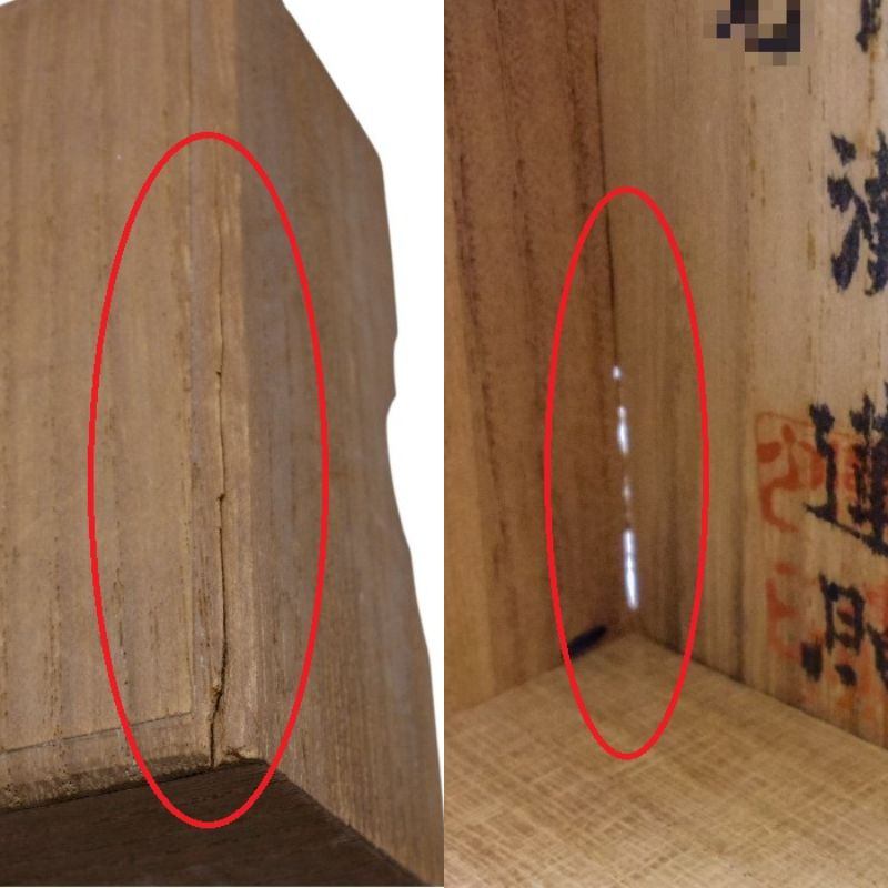 各部に汚れ、箱にひび割れ等のダメージがございます。 蓋裏には個人名を含む銘が入っています。 |