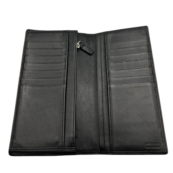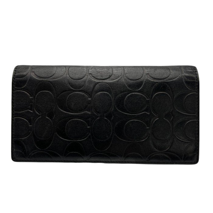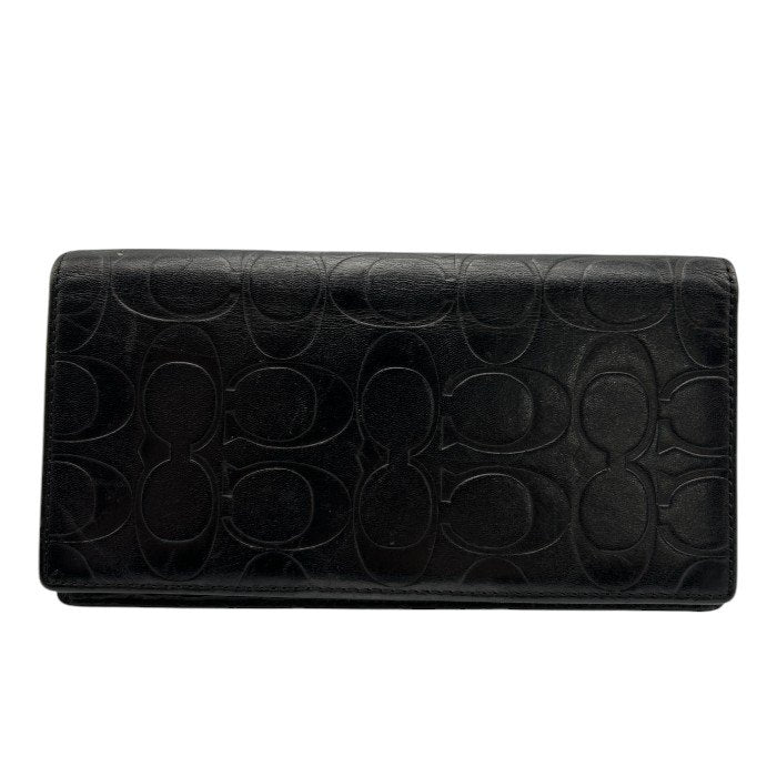 COACH コーチ シグネチャー エンボスドレザー レザー 2つ折り長財布 本革 財布 ブラック 収納 小銭入れ カード入れ 札入れ 中古 W4