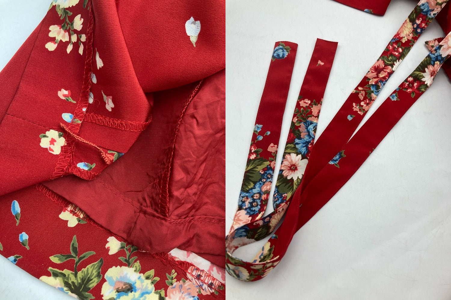 両脇や裏地にシミがございます。 裏地を止める糸の縫製が解けています。 |