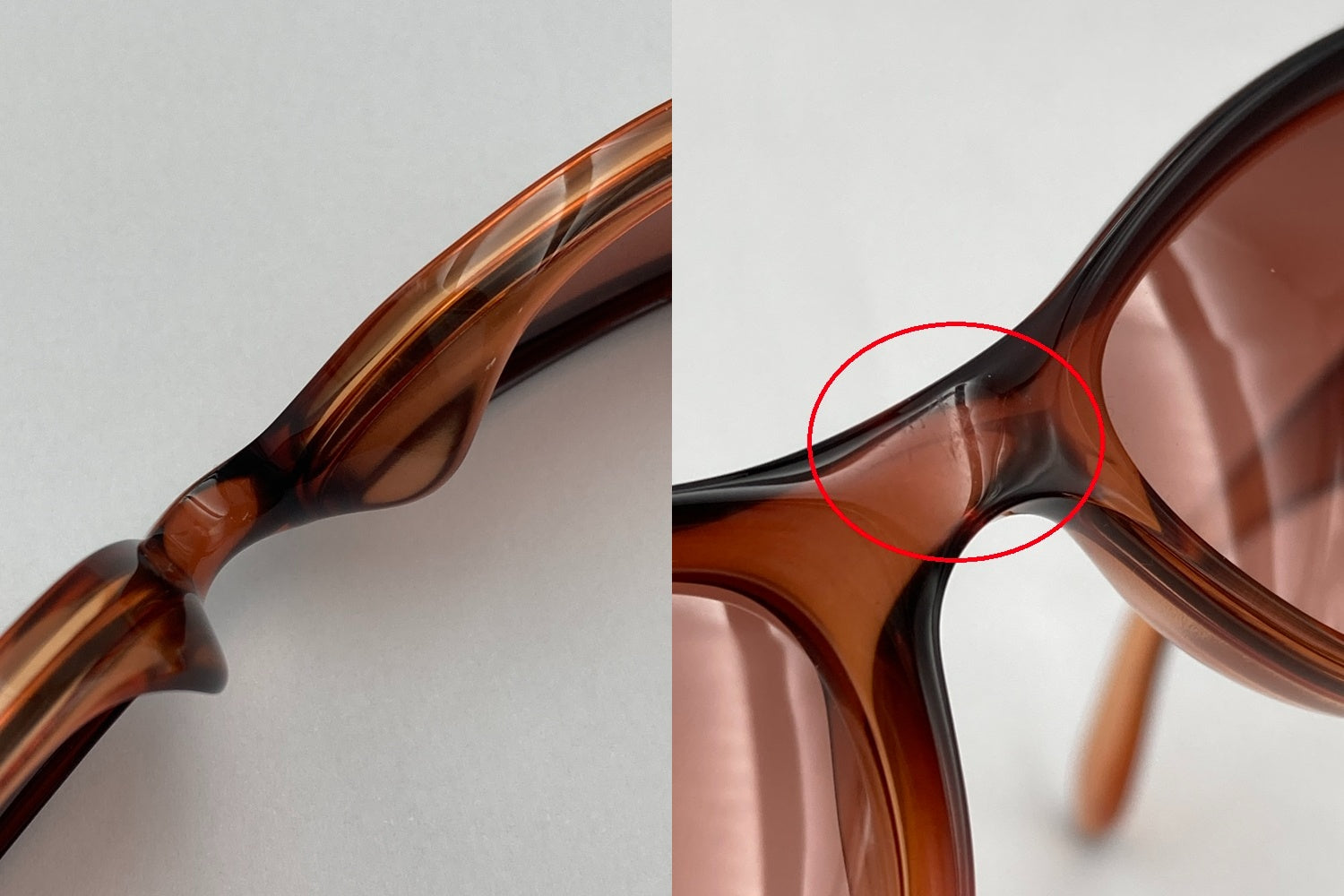 フレームやブリッジ、テンプルにややキズがございます。 レンズは綺麗な状態です。 箱やケースはございません。 |