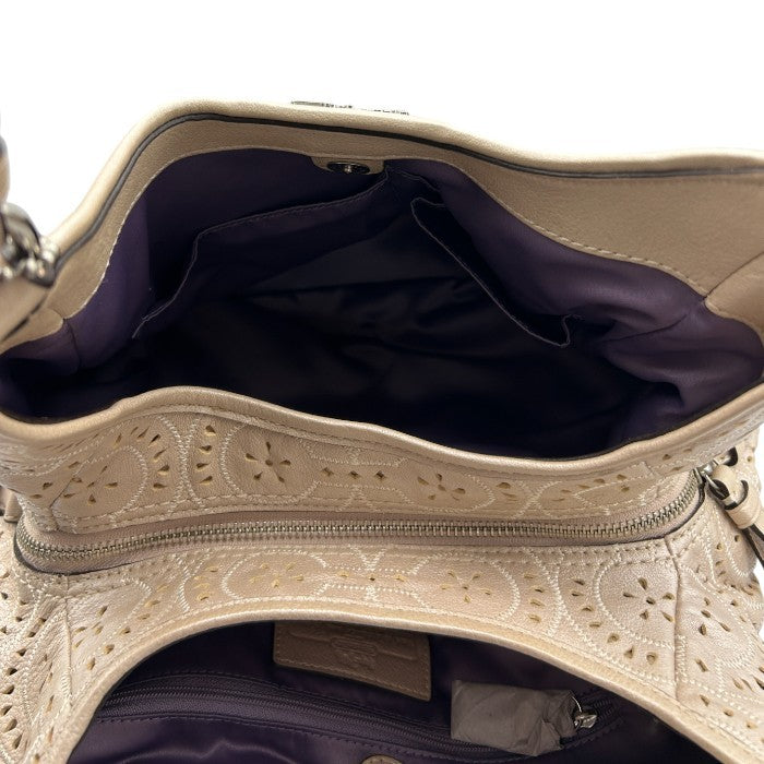 COACH コーチ マディソン マギー パンチングレザー トートバッグ 19625 本革 鞄 ブランド レディース パールベージュ 中古 W4