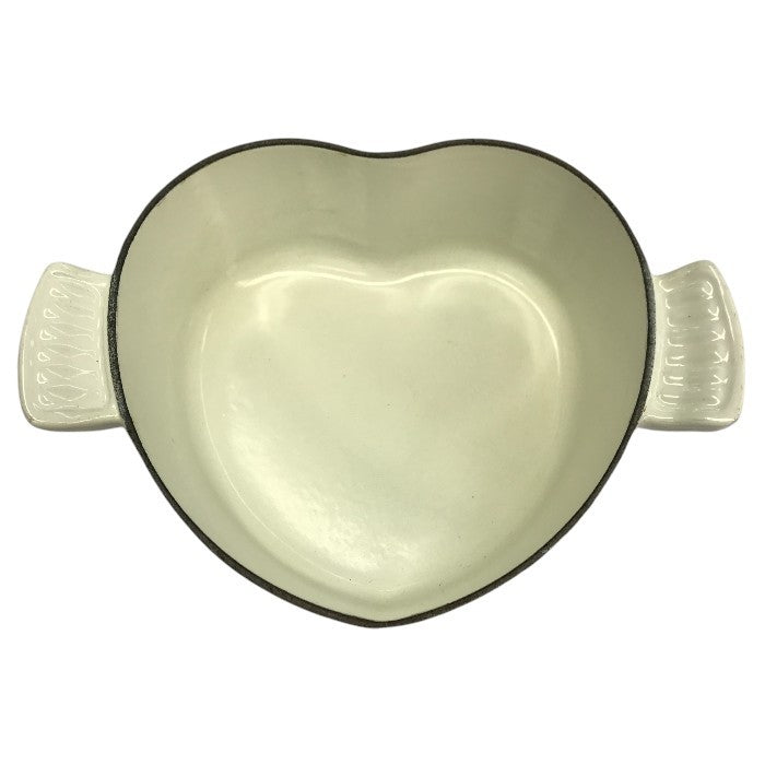 LE CREUSET ル・クルーゼ ココットダムール 両手鍋 2L ハート型 蓋付き 鋳物 ホーロー IH対応 ホワイト 中古 T1