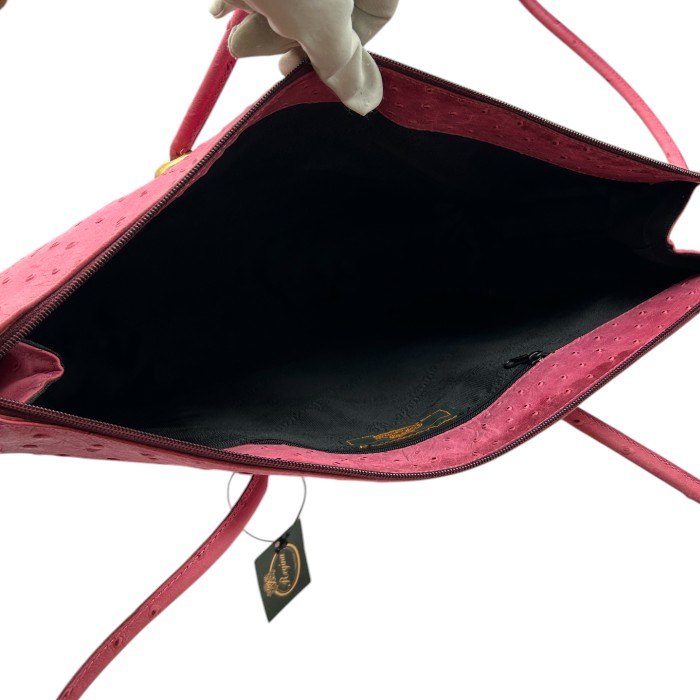 Regina レジーナ オーストリッチ トートバッグ 鞄 レザー 大きめ 通勤 レディース ピンク 中古 W4