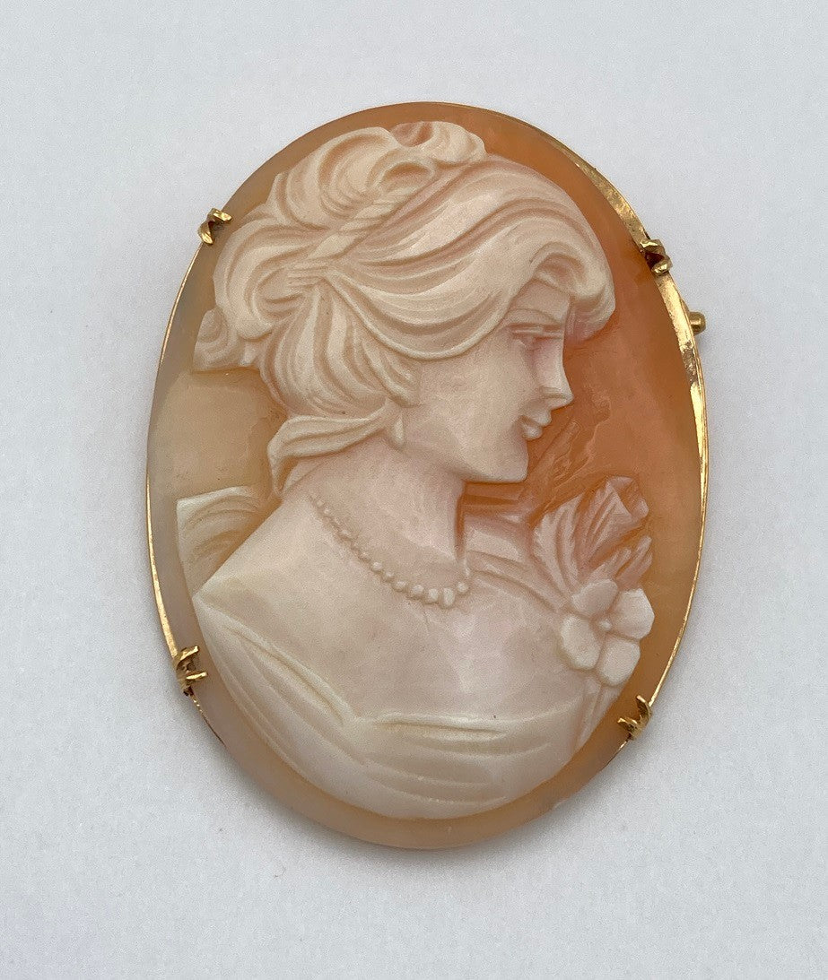 K18 シェルカメオ ブローチ 女性の横顔 中古 4