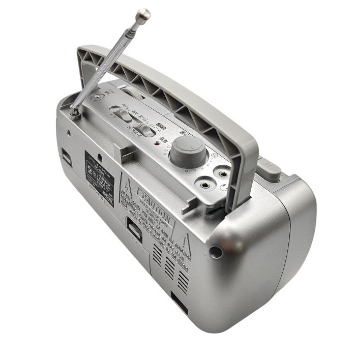 ●カセット部:対応テープ=ノーマルテープ / オートストップ○ ●チューナー部:受信バンド AM/FM ●実用最大出力:900mW ●共通部分:ヘッドホン端子○ マイク端子○ 内蔵マイク○ ●電源:乾電池=単2形乾電池×4本 / 家庭用電源=AC100V 50/60Hz ●乾電池持続時間:テープ再生時=約50時間 / ラジオ受信時=約250時間 ●消費電力:4.7W ●スピーカー:ユニット 7.7cm(4Ω)×1 ●質量(乾電池含まず) 約1.1kg ●コード長 約1.8m |