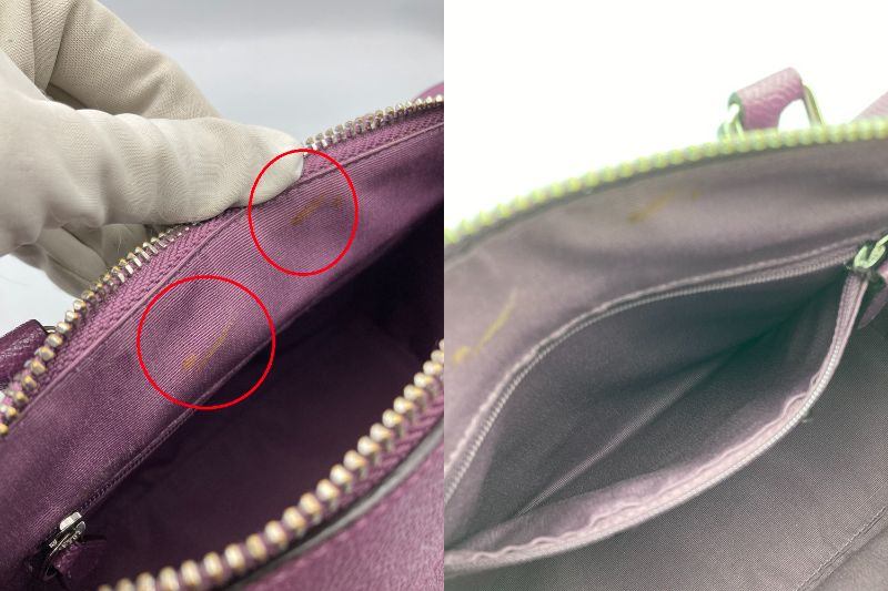 外側は比較的綺麗な状態ですが、内側にやや汚れやコキズがございます。 型崩れがございます。 |