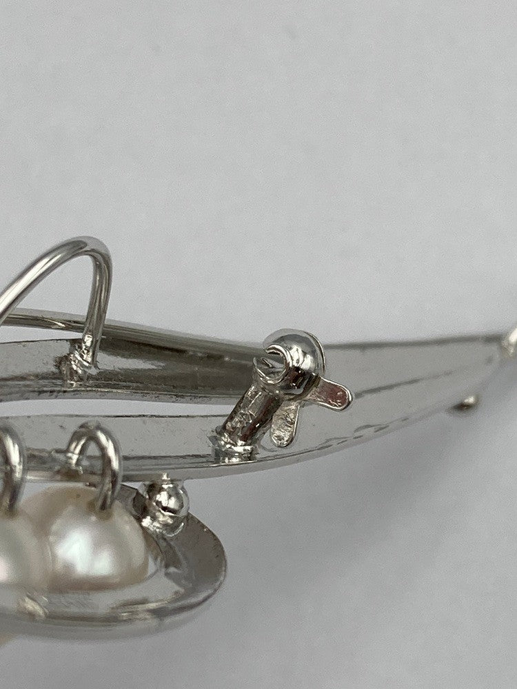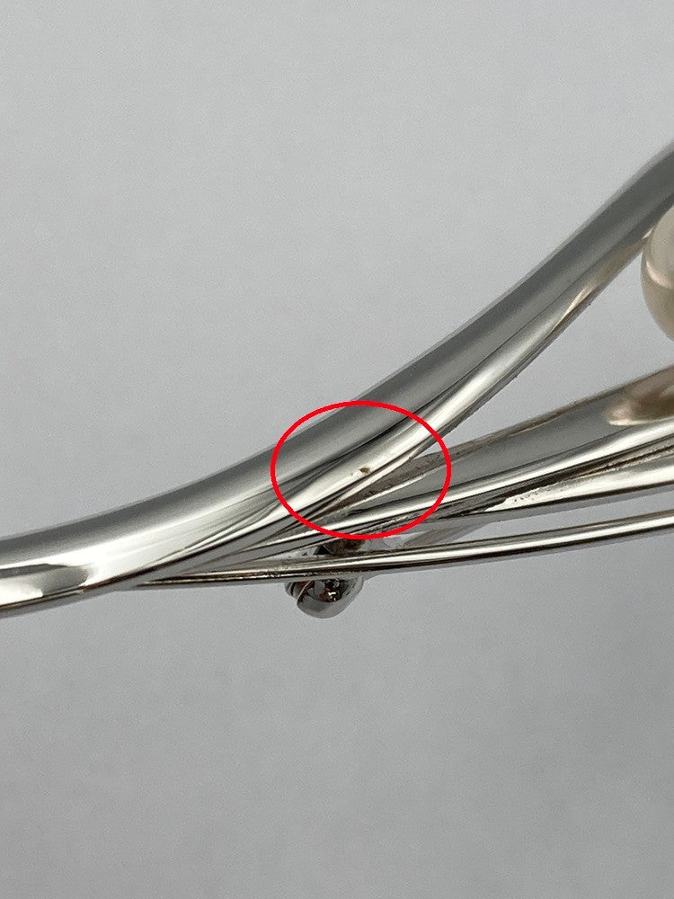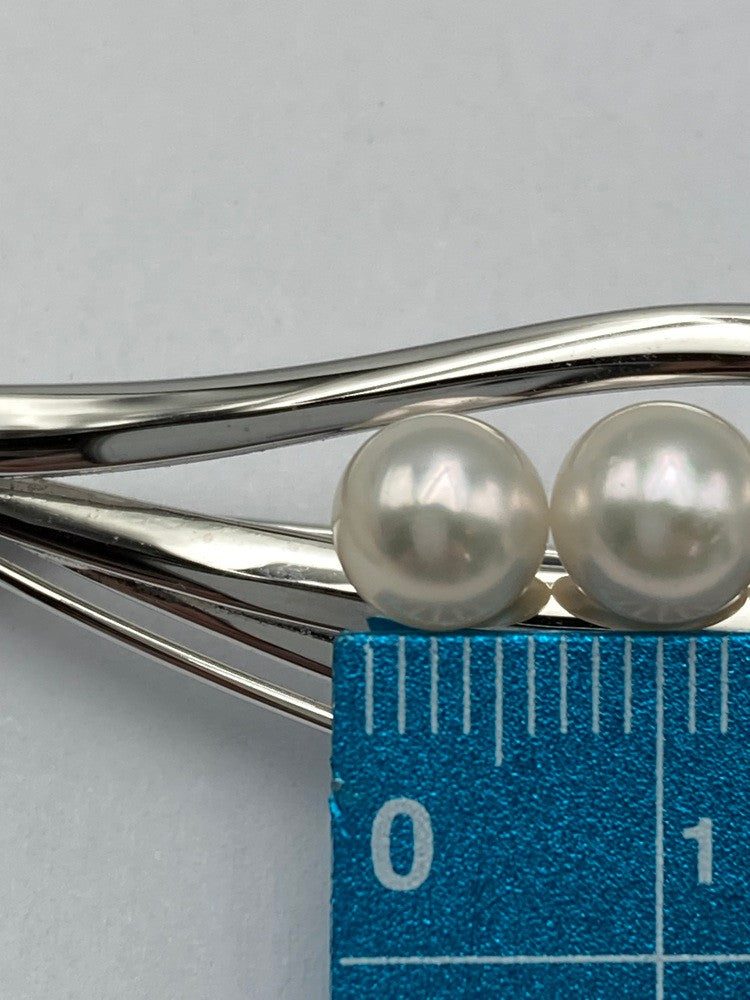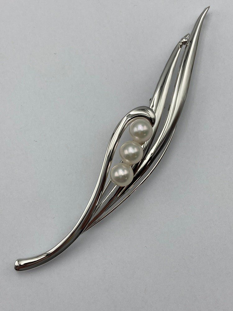 SILVER 6.0mmパール 3連 ブローチ リーフ 中古 D4