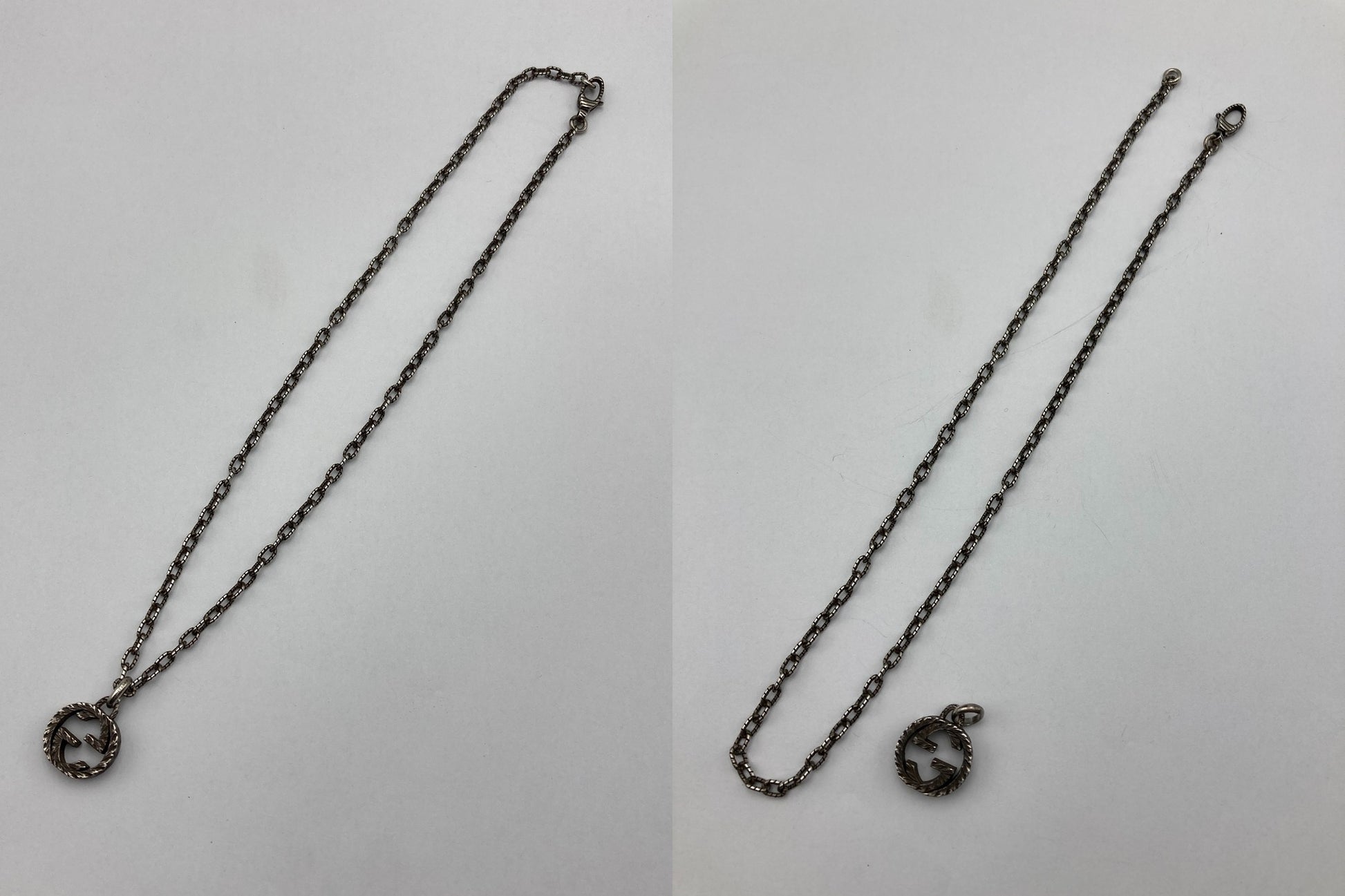 | サイズ | トップ:横1.6×縦1.9×厚み0.5cm、チェーン:45cm、重量:17.8g | |