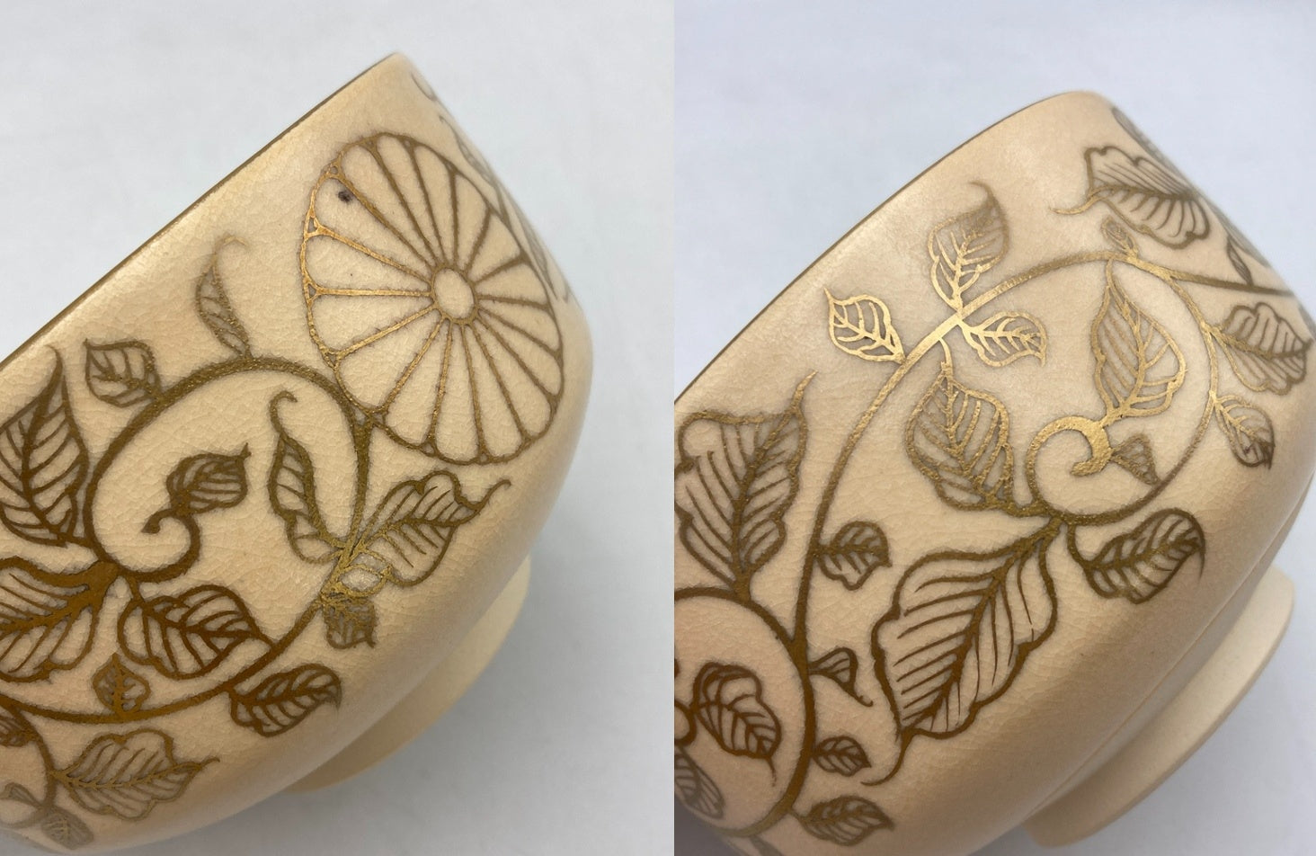 京都 泉涌寺 御紋章 菊 抹茶茶碗 中古 D4