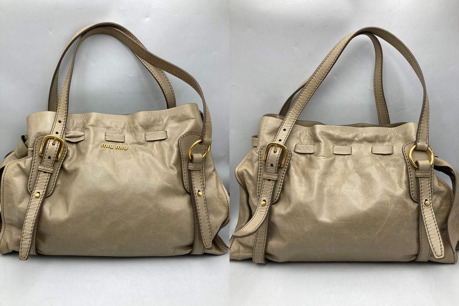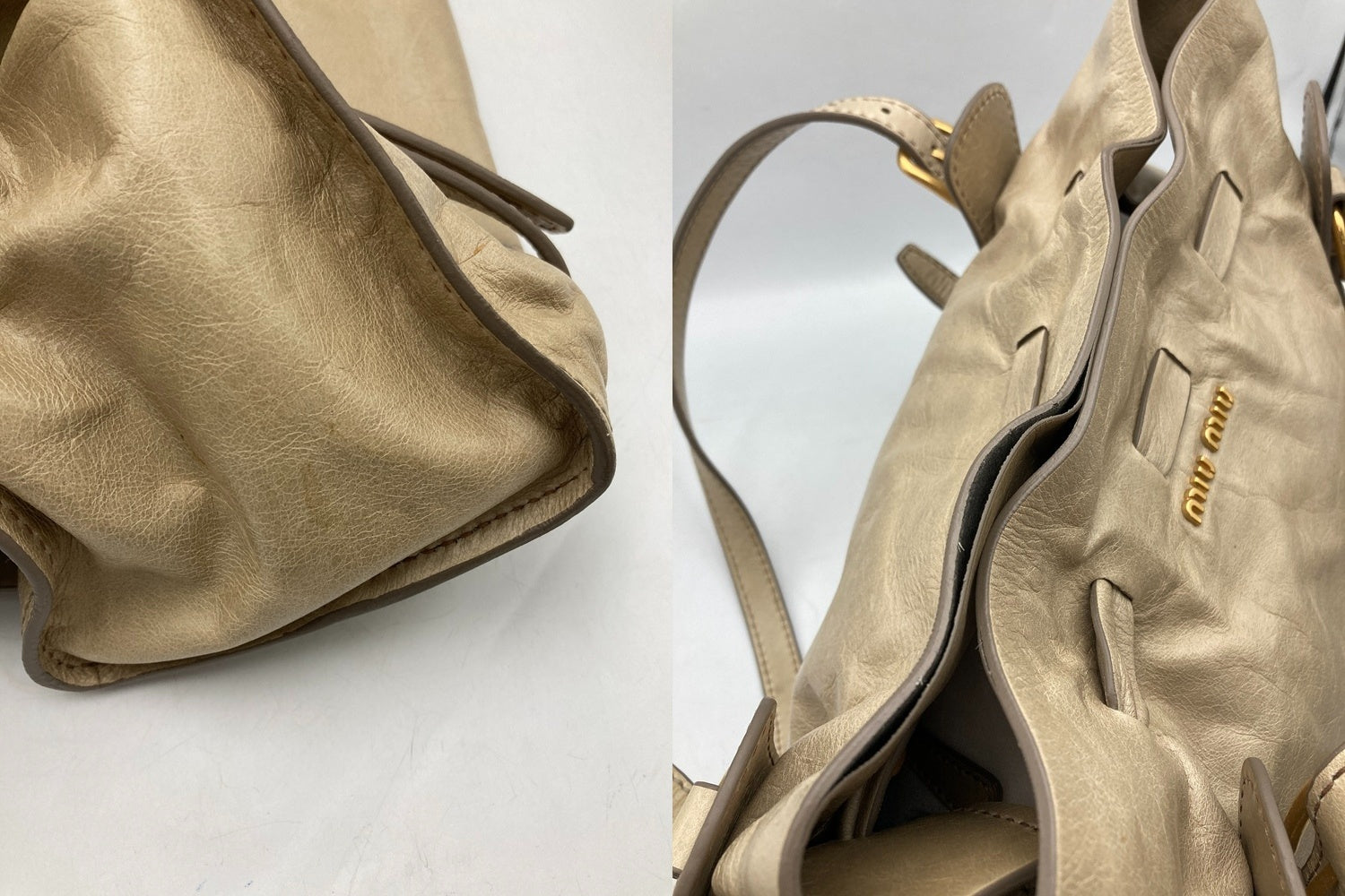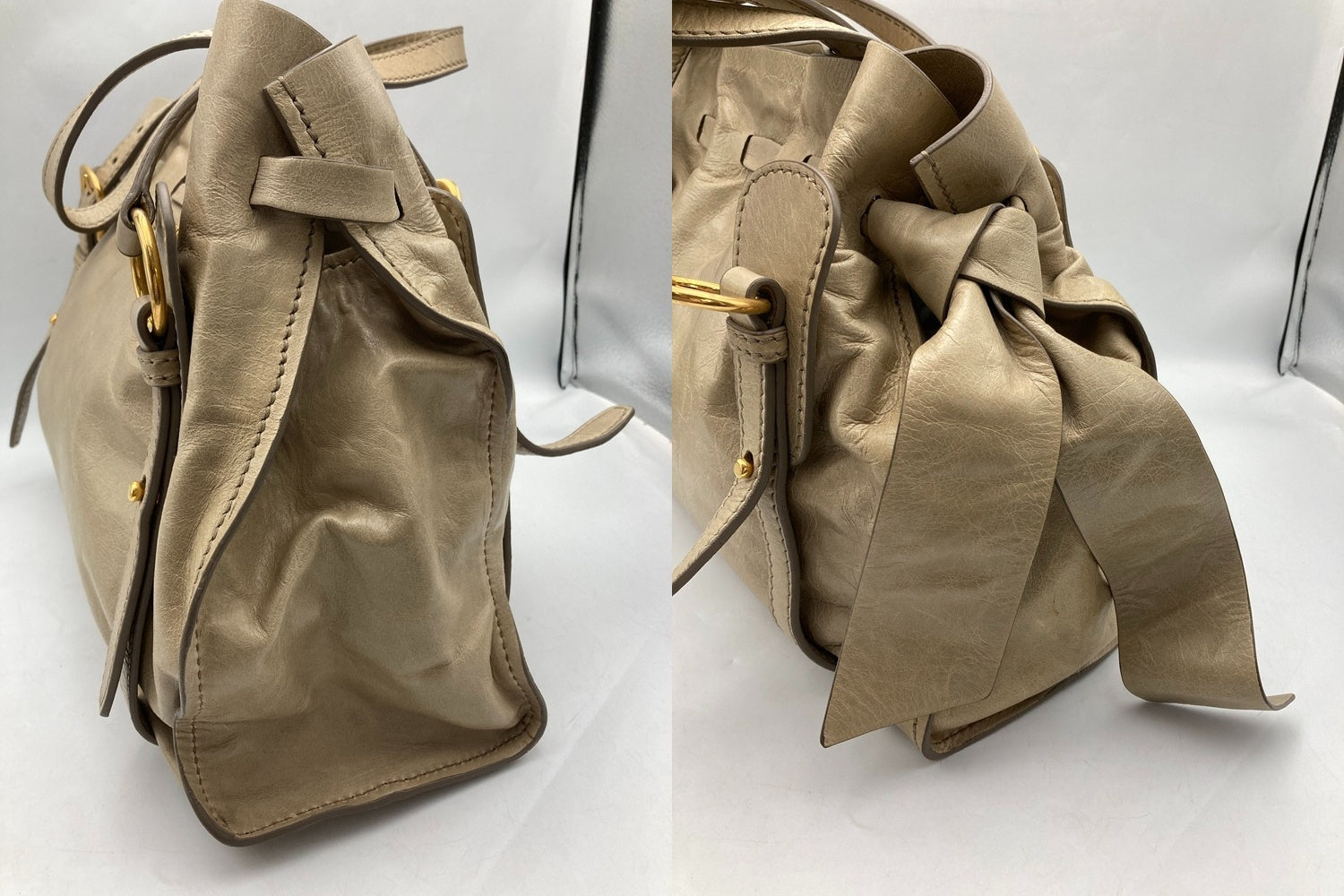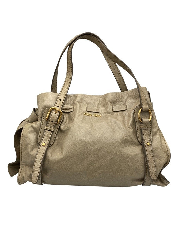 miumiu ミュウミュウ サイドリボン レザー トートバッグ レディース 中古 D4
