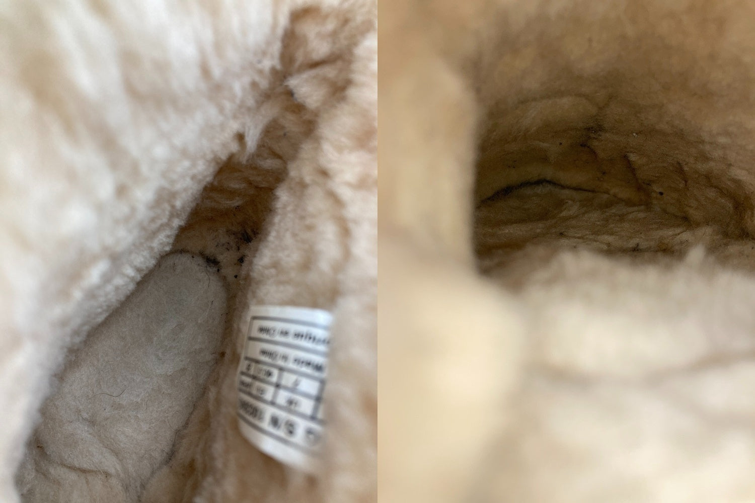 キズや汚れ、履きジワがございます。 インソールのつま先の方のボアに型崩れがございます。 箱にダメージがございます。 |